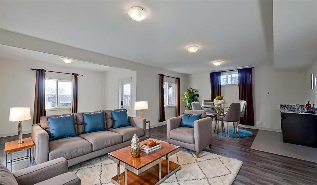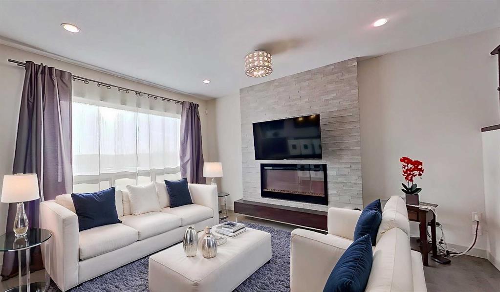 Exceptional home on one of the largest lots in Cranston, offering a rare pie-shaped, south-facing, professionally landscaped backyard on a quiet cul-de-sac. The outdoor space is truly unique, featuring a covered upper deck with awning, stone stairs leading to a gated backyard exit, a pergola, and two charming bridges connecting the yard-perfect for relaxing or entertaining. A fully developed walkout basement completes the seamless indoor–outdoor living experience. The open-concept main floor showcases a striking floor-to-ceiling tiled electric fireplace, a dedicated main-floor office, and a convenient walk-through pantry, ideal for modern living. Upstairs, the spacious primary retreat includes a luxurious ensuite with his-and-hers sinks, a vanity area, a walk-in closet, and a private coffee bar. A large bonus room, two oversized bedrooms-each with walk-in closets, and a generous laundry room complete the upper level. The walkout basement offers outstanding versatility with two additional bedrooms, a full bathroom (10 mm glass shower) with heated tile floors, a large living area, and a wet bar with heated tile flooring, all with direct access to the backyard. Located in the highly sought-after community of Cranston, known for its family-friendly atmosphere, excellent schools, parks and pathway systems, proximity to Fish Creek Park and the Bow River, and easy access to Seton Urban District, South Health Campus, and major commuter routes (3 min walk to the bus stop).