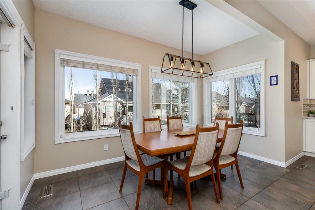 Set in Evercreek Bluffs within the sought-after community of Evergreen, this Shane Homes built two-storey walkout offers more than 3,800 sq. ft. of developed living space, a double attached garage, and a well-planned layout suited to daily living. The exterior combines stucco and stone with a welcoming front porch and Gemstone lighting, creating strong curb appeal. The main floor begins with a spacious entry and 9’ ceilings. Hardwood flooring extends through the living and family rooms, where a two sided gas fireplace creates a natural connection between the spaces. The open concept design continues into the dining area and kitchen, finished with tile flooring for durability and easy maintenance. The kitchen is equipped with stainless steel appliances, white cabinetry, quartz countertops, a corner pantry, an island with seating, and ample storage and workspace. The dining area provides direct access to a maintenance free balcony complete with a gas line for BBQ use. A main floor office with French doors offers a quiet workspace, while a two piece powder room and a rear laundry area off the garage add convenience. Upstairs features a large, sun filled bonus room. Double doors lead into the primary suite, which includes a walk-in closet and a well appointed ensuite with dual sinks, a soaker tub, and an oversized shower. Two additional bedrooms each include their own walk in closet and share a four piece bathroom. The fully developed walkout basement includes 9’ ceilings and a generous recreation space. A dedicated media area with built in shelving and a gas fireplace adds comfort and flexibility. The lower level also includes a bedroom with a walk-in closet and ensuite access to a three piece bathroom, which can also be accessed from the rec room. Additional storage is available throughout. Notable upgrades and features include central vacuum, a new hot water tank in 2020, triple pane windows installed in 2024 with warranty, and recent appliance updates including washer and dryer (2024), fridge (2023), and stove (2025). The garage is finished with built in cabinetry and overhead storage. The backyard is fully fenced and professionally landscaped, featuring a covered patio, mature trees, established shrubs, a large lawn area, and underground irrigation. The location offers exceptional access to amenities and lifestyle conveniences. It is steps from the pathways of Fish Creek Provincial Park and close to a nearby playground, with schools including Dr. Freda Miller School, Evergreen School, and Marshall Springs School all within walking distance. Everyday shopping is nearby at The Shops at Buffalo Run including Costco, while major routes are easily accessible via Stoney Trail. Transit options include a short drive to the Fish Creek LRT Station, supporting quick access to downtown. Recreation destinations such as Spruce Meadows and the Rocky Mountains are also within easy reach. Check out the floor plans & 3D Tour for a closer look!