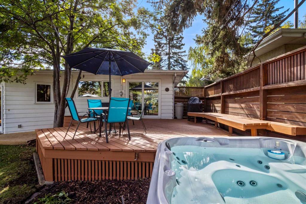 Welcome to this beautifully updated 1,432 sq. ft. bungalow, perfectly situated in the mature and family-friendly community of Chinook Park. Nestled on a spacious 60’ x 130’ (7,793 sq. ft.) lot, this property offers a blend of modern renovations and timeless charm with a backyard oasis you’ll love coming home to. Inside, you’re greeted with bright, open-concept living featuring a spacious kitchen, dining and living area centred around a cozy wood-burning fireplace. The main floor hosts 3 bedrooms, 2 full bathrooms, a functional mudroom, and seamless flow for family living or entertaining. The fully developed basement expands your living space with a large recreation room with fireplace, den (easily converted to a bedroom with the addition of a window), full bathroom, laundry area, and plenty of storage space. Step outside to your private, treed backyard oasis, complete with a large deck, mature landscaping, hot tub, and lots of room for kids, pets, or summer gatherings. A double detached oversized garage with alley access adds convenience and extra storage. Recent functional upgrades include: high efficiency furnace (2021), hot water heater (2023), and asphalt shingles (2023). This prime location offers quick access to top schools, parks, and pathways, including Glenmore Reservoir, Heritage Park, and Weaselhead Flats. You’re also minutes to Rockyview Hospital, shopping, restaurants, and major roadways for an easy commute downtown or a fast escape to the mountains. This move-in-ready bungalow combines space, style, and location—an ideal opportunity in one of Calgary’s most sought-after communities. Book your showing today!