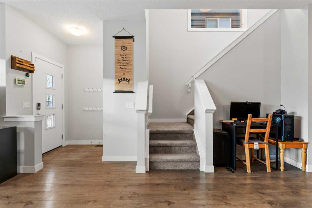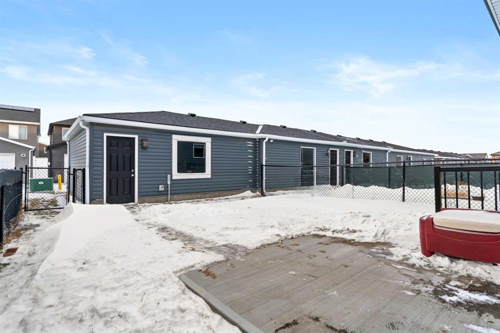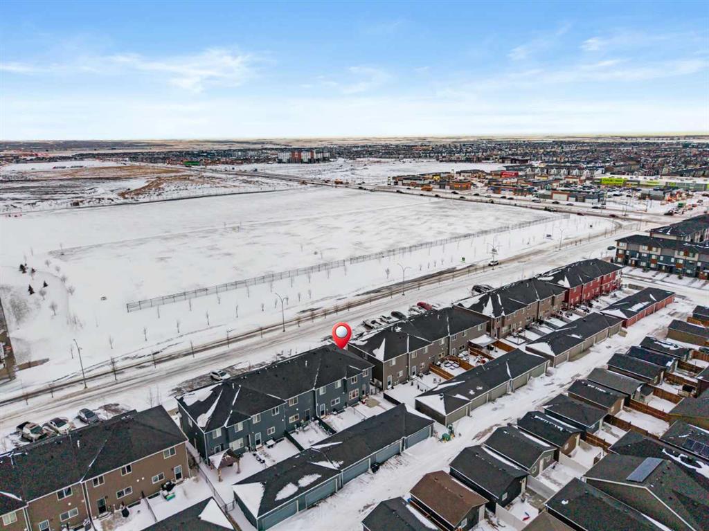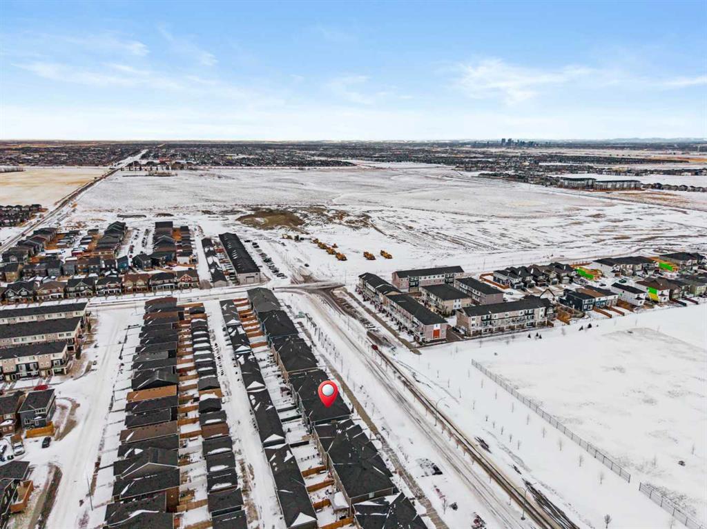 Welcome to this modern, no condo fee, fully developed, end-unit townhome, built in 2019 by Shane Homes. Offering a separate side entrance for a potential secondary suite (with city of calgary permits and approval), this home presents an exceptional opportunity for multi-generational living or future rental income. The main floor welcomes you with a spacious front entry leading into a bright, open-concept living, kitchen, and dining area. The modern kitchen features contemporary cabinetry, quartz countertops, a large eat-up island, pantry, and stainless steel appliances. A convenient 2-piece bathroom and a generous boot room with direct access to the fully fenced backyard and double garage complete the main level. Upstairs, the second floor offers a laundry room, three well-appointed bedrooms, including a spacious primary retreat with a walk-in closet and private ensuite bathroom. The fully developed basement, completed by the builder, continues the home’s cohesive design and modern finishes. This level includes a large bedroom, 4-piece bathroom, mechanical/storage room and a spacious living/entertaining room, making it ideal for guests, extended family, or future suite potential. The home features a new roof and siding (2025), New washing machine (2025), and additional outlets for furture kitchen/wet bar development in the basement. Cornerstone is an established community offering 95 Acres of land dedicated to parks, 5 access points to easily enter and exit the community, 14 kms of pathways, 5 future school sites, 180 Acres of natural wetlands, Commercial space equipped with major amenities and 3 playgrounds.