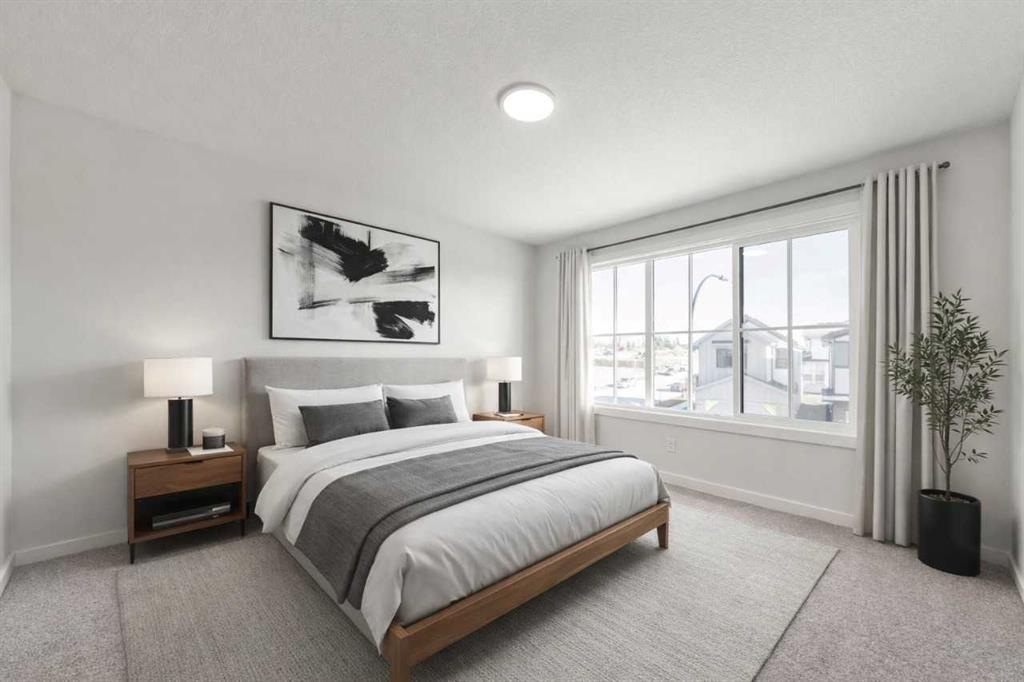 Framed by breathtaking mountain views from the rear, this 3-bed, 2.5-bath, 2,237 sq ft front-attached garage home delivers refined, quick-possession living at its finest. An open-to-above foyer flows into a sun-drenched main floor with 9' ceilings and a great room anchored by a 50" electric fireplace. The chef's kitchen stuns with quartz countertops, ceiling-height cabinetry, chimney hood fan, oversized island, and walk-through pantry. Upstairs, the primary bedroom features a private sitting area, custom walk-in closet with direct laundry access, and a spa-style ensuite with double sinks, soaker tub, and tiled shower. A walkout basement with 9' foundation offers exceptional development potential, while an extended concrete patio and rear deck elevate outdoor living. High-efficiency furnace, HRV system, and soft-close finishes throughout.