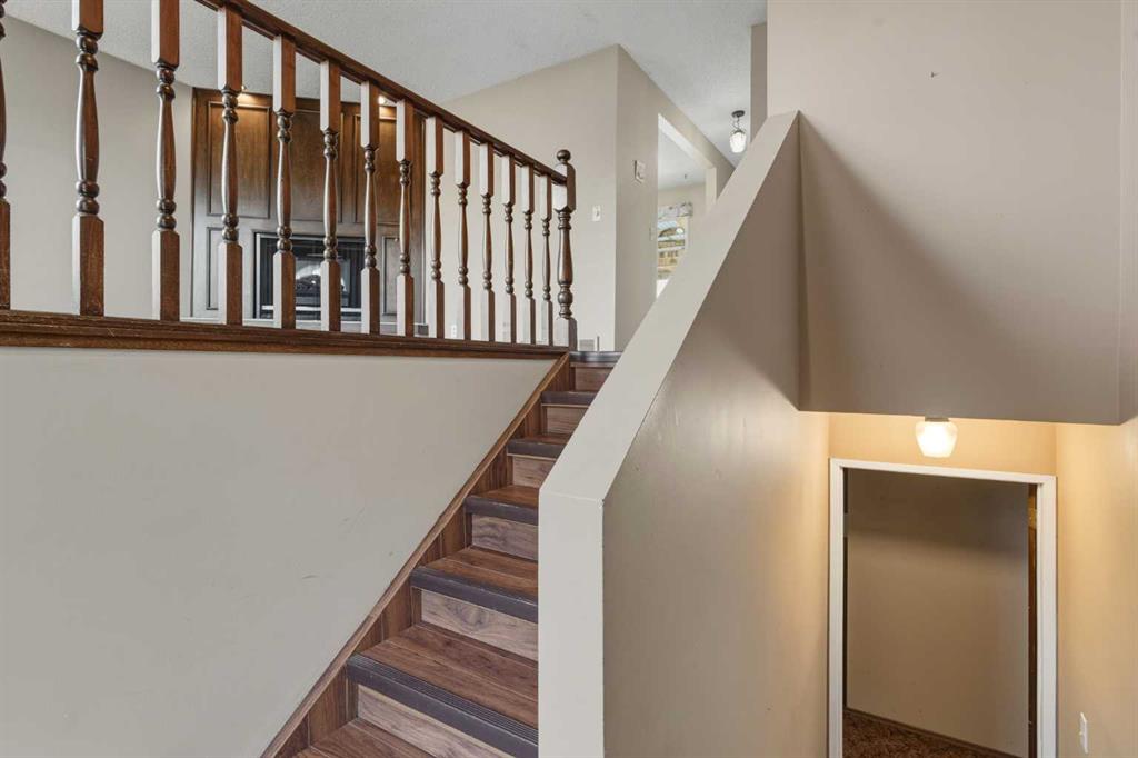 Welcome to 8 Ranchlands Crescent NW! This well-loved home offers comfort, functionality, and great potential - with no houses behind and convenient alley access. The four year old roof adds peace of mind, while the newer laminate flooring in the living room brings a fresh touch. Enjoy cozy evenings by the gas fireplace or relax on the covered deck overlooking the treed yard. The main floor features two bedrooms, a full bathroom, a bright kitchen with white cabinetry and good storage. Laundry is conveniently located on the main floor as well. Downstairs, you'll find a third bedroom, a 3 piece bathroom, a spacious rec room, and a tinker/work area - perfect for hobbies or projects. This home has been well cared for over the years, and is ready for your personal touches. A great opportunity to update and make it your own while building equity in a mature, family-friendly community close to parks, schools, and amenities.