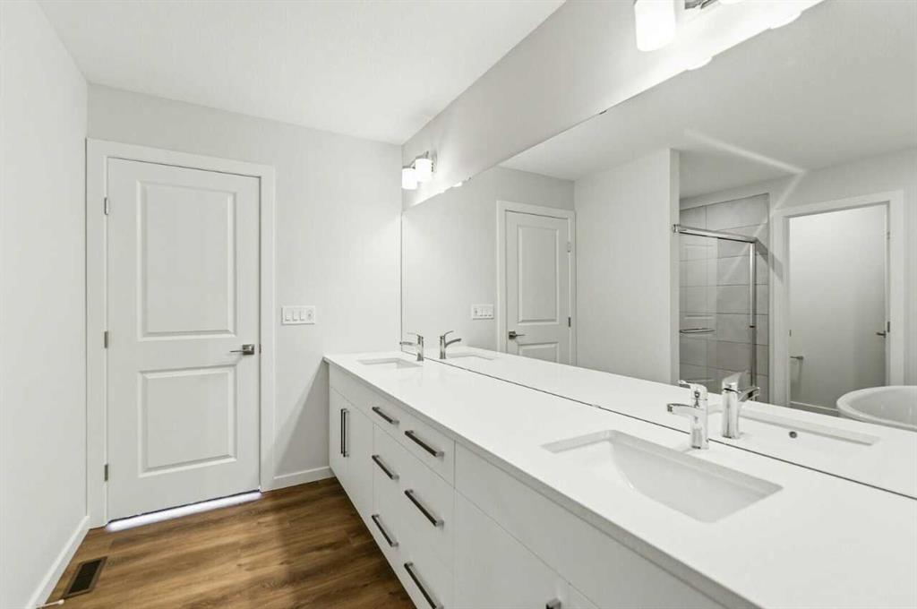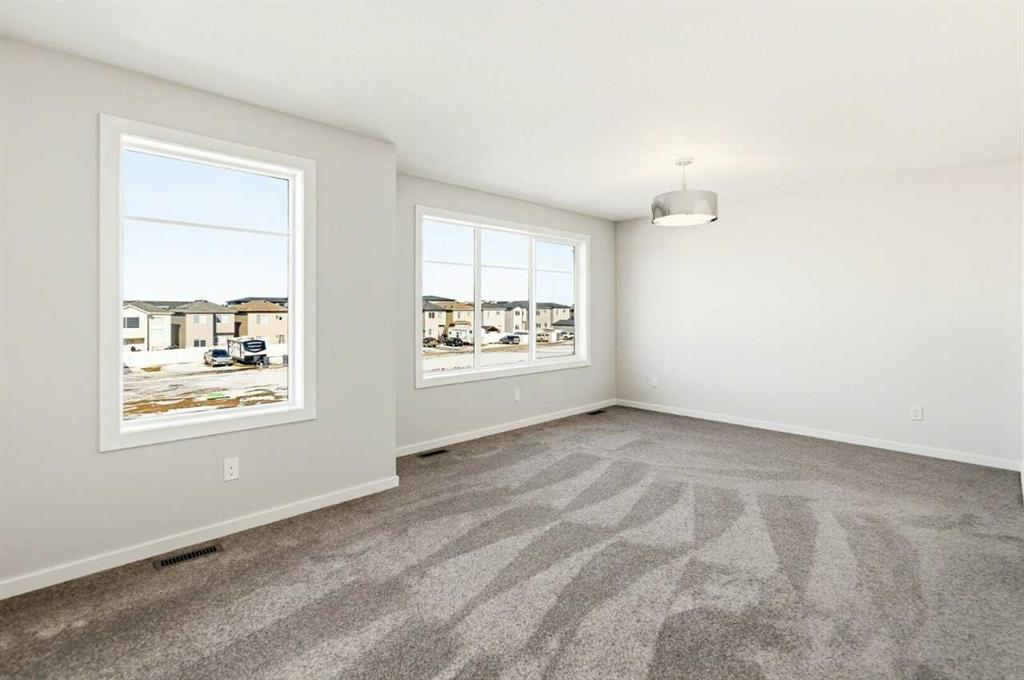 Welcome to The Hadley P by Bedrock Homes, located at 80 Linden Place in the Liberty Landing community. This 2,237 sq ft front-attached garage home offers 3 bedrooms and 2.5 bathrooms with a thoughtful, family-friendly layout. The open-concept main floor is anchored by a central kitchen featuring a large quartz island and countertops, ideal for everyday living and entertaining. Luxury vinyl plank flooring runs throughout the main level and all wet areas. Upstairs, enjoy a spacious bonus room, huge second-floor laundry and well-proportioned bedrooms. Primary bedroom has an exquisite ensuite and a large walk-in closet. The home includes a smart home technology system with a smart thermostat, keyless lock, along with a 50” linear LED electric fireplace. Situated near scenic walking trails, green spaces, playgrounds, shopping, and quick access to QE2, this home offers comfort, convenience, and value in a growing community.