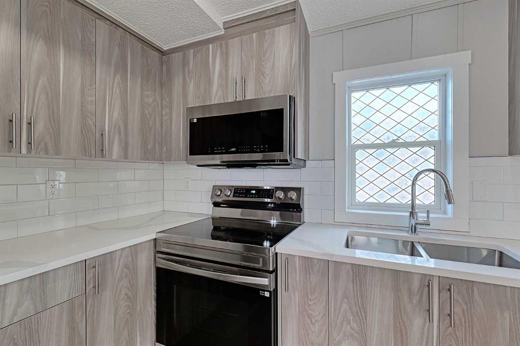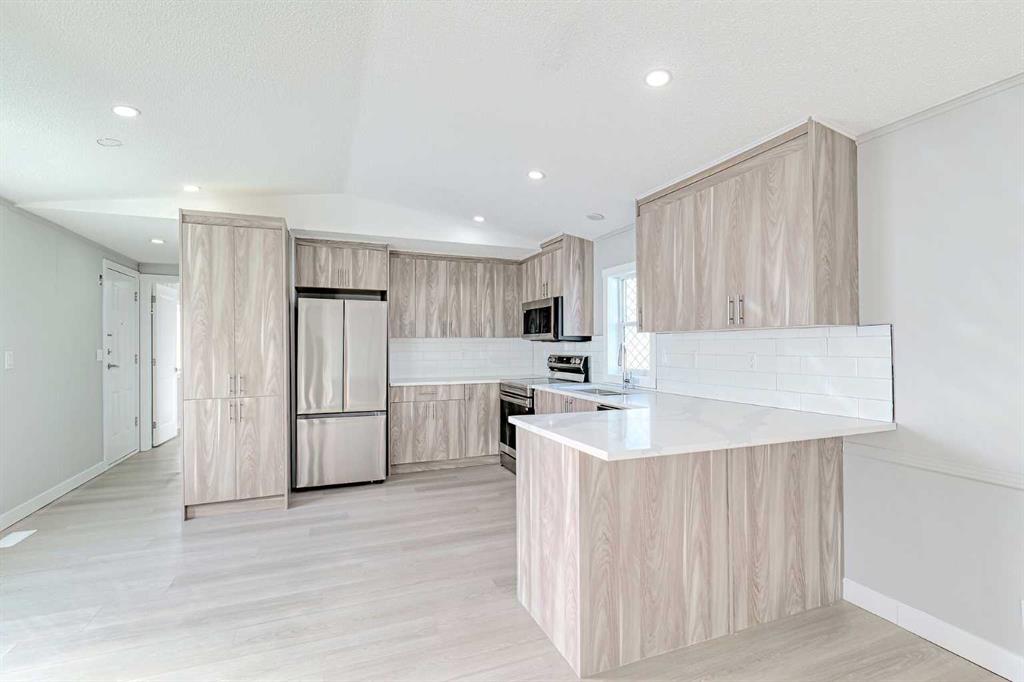 ***BRAND NEW SKIRTING has just been installed***BEAUTIFULLY RENOVATED: 3 bedroom and 2 bathroom home - nearly 1200 sq. ft located in the sought after park of Chateau Estates. This includes BRAND NEW KITCHEN with gorgeous custom cupboards, QUARTZ countertops, beautiful backsplash and BRAND NEW STAINLESS STEEL APPLIANCES! *** Brand new Luxury Vinyl Flooring throughout the whole home***New lighting throughout*** Bathrooms have been update with new toiles and vanities. The whole home has just been professionally painted. Brand new interior doors and baseboards everywhere! This spacious home is perfect for a family or someone that is looking to downsize and simplify life. The property comes with two decks, a patio and a large SHED! Extremely low pad fees ($630/month)! You have go to come here to view this NOW! Won't last long!