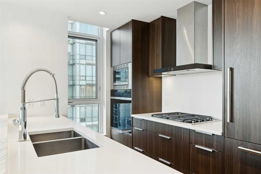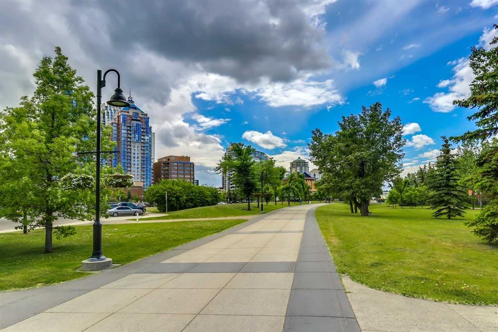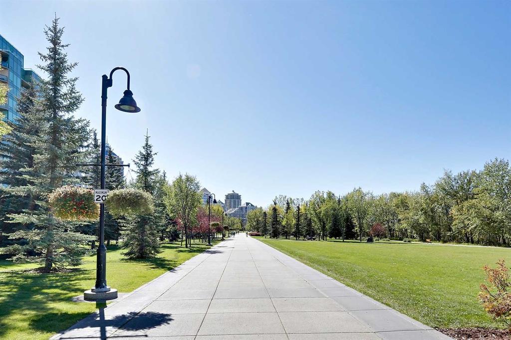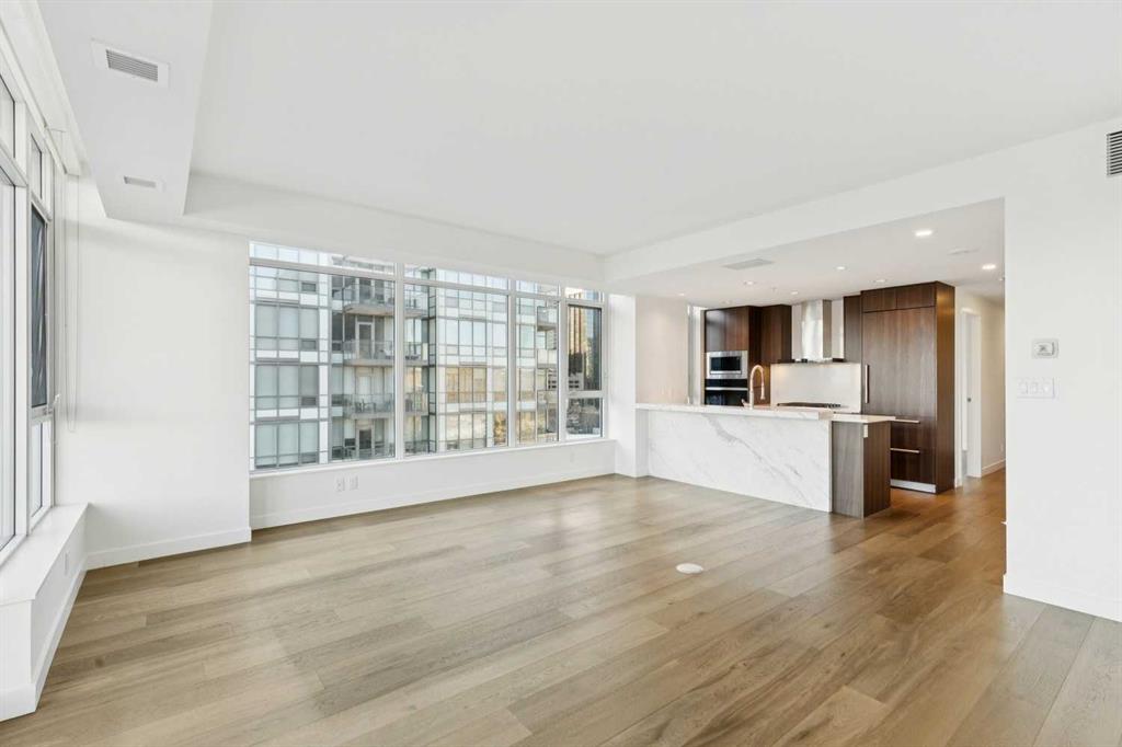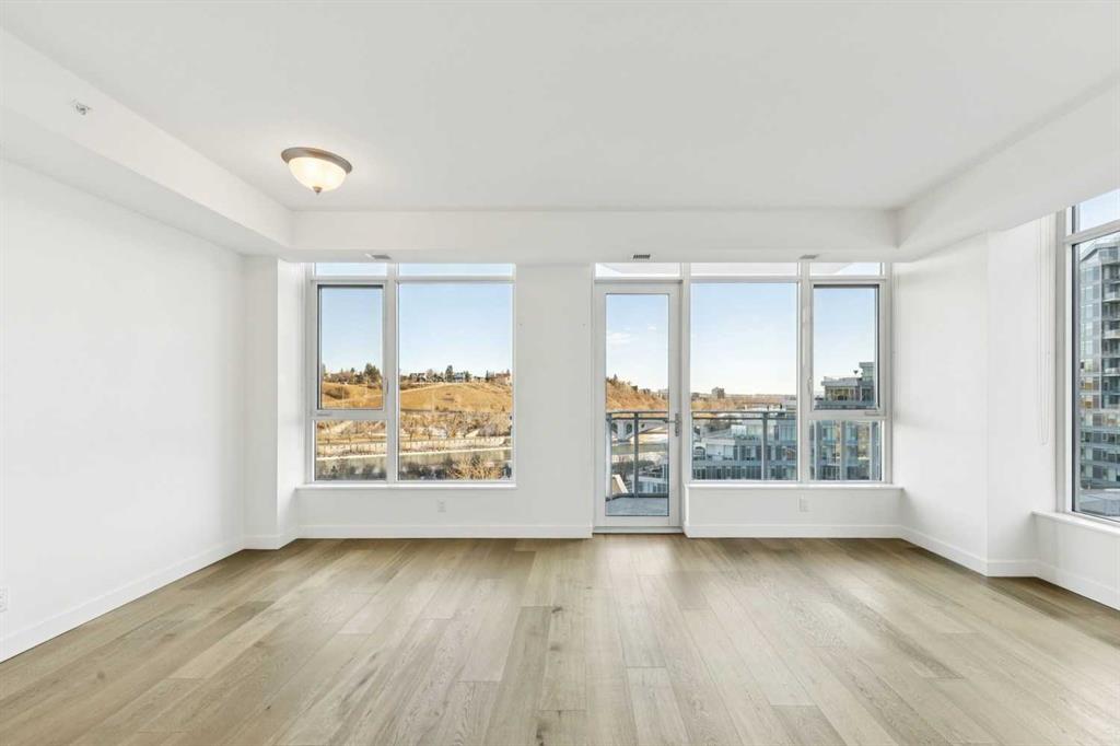 With spectacular, unobstructed views of the Centre Street Bridge, Prince’s Island Park, and the Bow River valley, this stunning two bedroom unit offers one of the most iconic outlooks in the city. With the land in front already developed, the breathtaking views are securely protected. Floor-to-ceiling corner windows flood the apartment with natural light, enhancing the thoughtful two-bedroom, two-bathroom layout, ideal for comfortable living for one or two. The expansive living area opens to a private balcony where river, park, and city views take centre stage. Wide-plank, light-toned laminate flooring runs throughout, complemented by freshly painted interiors and sophisticated, timeless finishes. The contemporary kitchen is both elegant and highly functional, featuring premium appliances including a Wolf gas cooktop and wall oven, integrated Sub-Zero refrigerator, panelled Asko dishwasher, quartz countertops, a marble breakfast bar, ample storage, and a full pantry. The primary bedroom offers a generous walk-in closet and a beautifully appointed ensuite with dual sinks, marble counters, a soaker tub, and a large shower. The second bedroom is well-sized with a window overlooking the city centre and located across from a full bathroom. Additional features include in-suite laundry with folding counter and storage, two assigned underground parking stalls, and a separate storage locker. Building amenities include a well-equipped fitness centre, bike storage, Concierge services and a car wash bay. Steps to river pathways, Prince’s Island Park, the Peace Bridge, downtown, top restaurants, and year-round festivals - this is exceptional inner-city living.