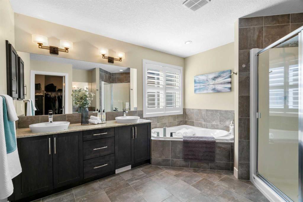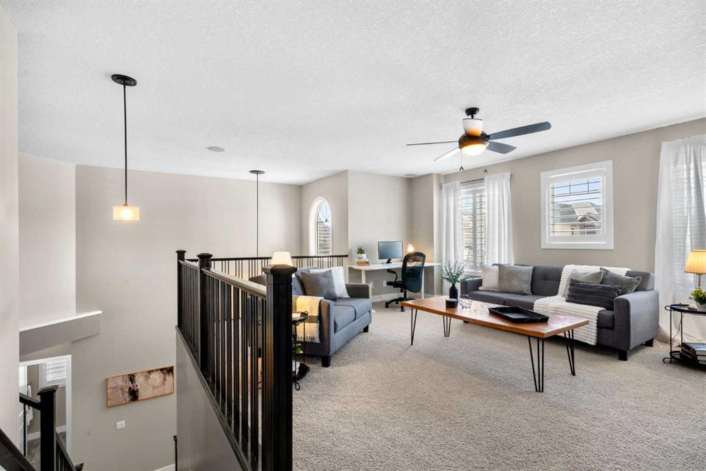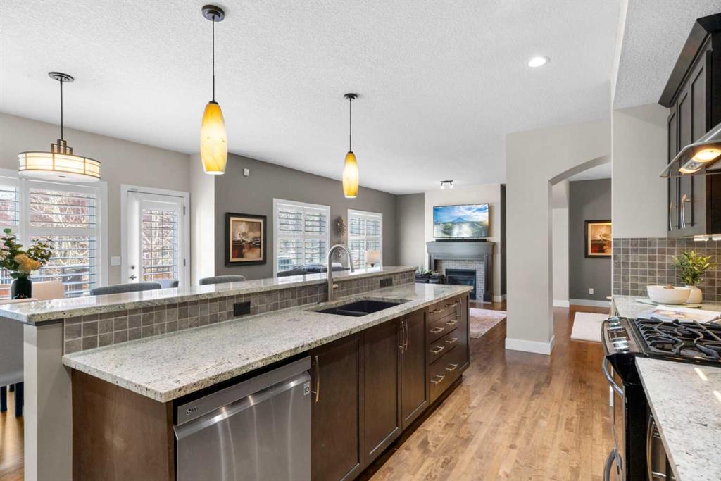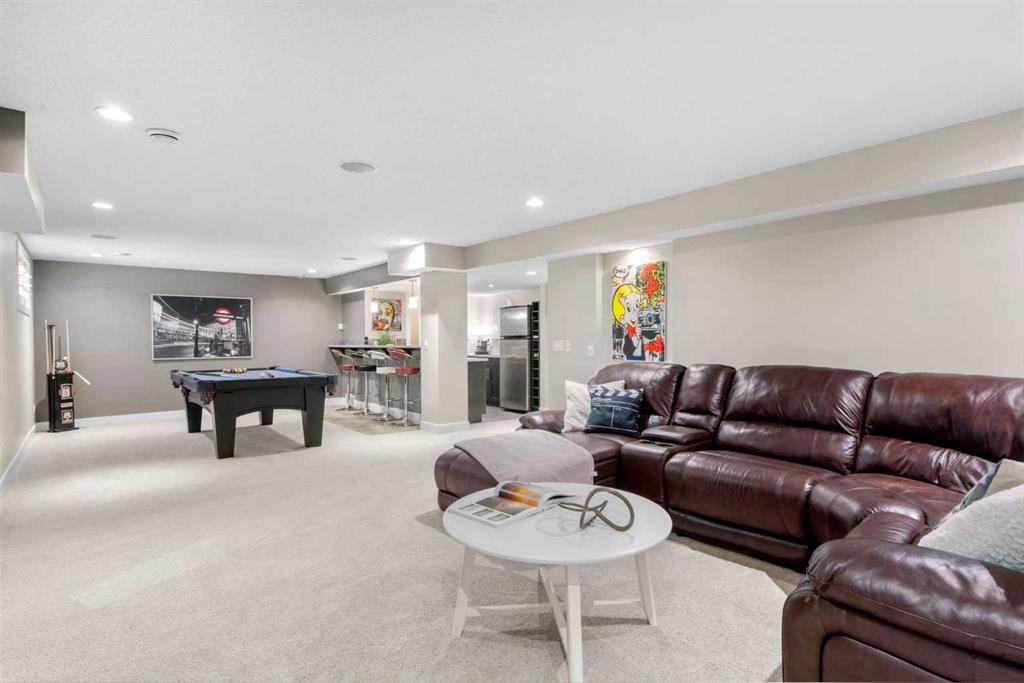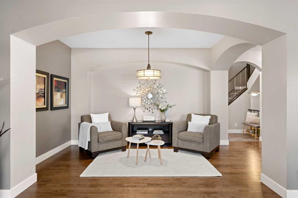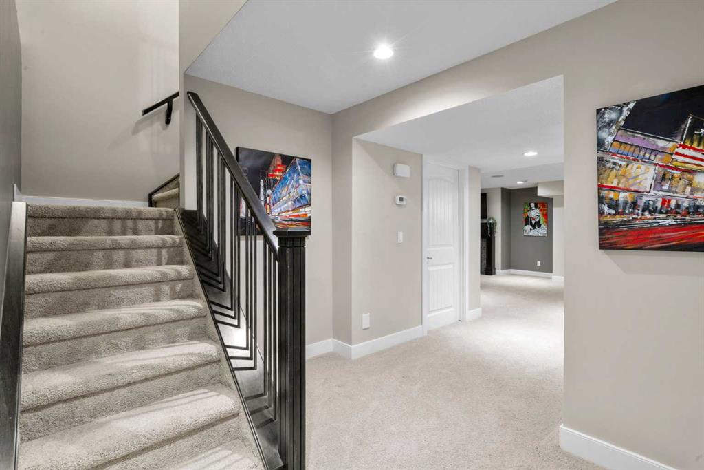 Welcome to this elegantly designed luxury residence offering nearly 4,000 sq ft of sophisticated living space, thoughtfully crafted to balance comfort and functionality. From the moment you enter, you’re greeted by a bright, airy interior featuring 9’ ceilings, rich hardwood flooring, and an abundance of natural light, creating a warm and refined atmosphere. The main level showcases a striking open-concept layout. The chef-inspired kitchen is a true showpiece, featuring a stunning oversized island, extensive cabinetry, and a walk-through pantry connecting seamlessly to a spacious mudroom. The inviting living room is anchored by a gas fireplace, while a private main-floor office offers a quiet and versatile workspace. Upstairs, the primary suite is a luxurious retreat, complete with a spa-inspired ensuite and expansive walk-in closet. Completing the upstairs is a spacious bonus room with fireplace and two additional generous sized bedrooms—both with walk-in closets—provide exceptional comfort. The fully developed basement extends the home’s living space with a wet bar, expansive recreation area, third fireplace, fourth bedroom, full bathroom, and ample storage—perfect for entertaining and family living. Step outside to a beautifully landscaped backyard with a deck, patio, gazebo, and hot tub, creating a serene, resort-inspired setting—perfect for entertaining or unwinding in style and comfort. Ideally located on a quiet street in one of Airdrie’s most sought-after communities, with creekside pathways, parks, schools, shopping, restaurants and transit all close by, this is a rare opportunity you won’t want to miss.