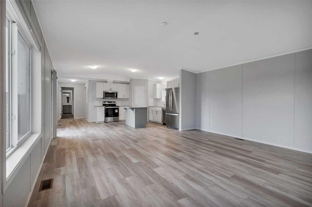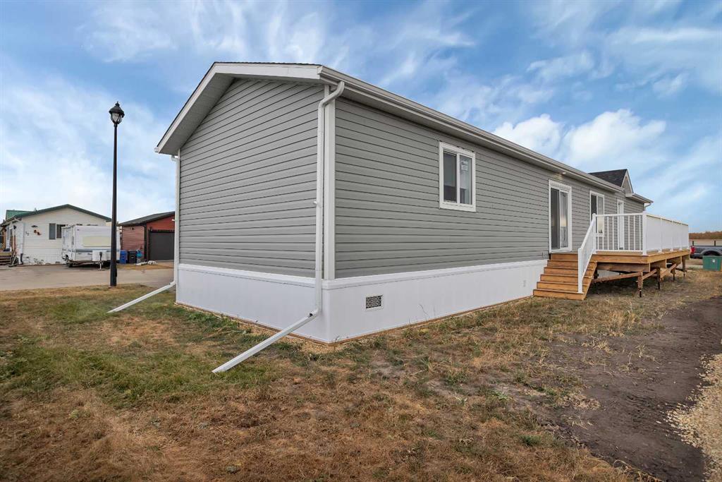 Visit REALTOR® website for additional information. Looking for a hassle-free, move-in-ready, brand-new home? This SRI Emerald modular home is presented by Dynamic Modular Homes in the friendly community of Blackfalds. It is backed by a 10-year home warranty and features durable 30-year architectural shingles, offering peace of mind and lasting value. Enjoy a bright, open-concept layout with vaulted ceilings and an inviting kitchen featuring an island with built-in cabinetry, a breakfast bar, and a spacious pantry. Sliding glass doors lead to your large south-facing deck — perfect for relaxing or entertaining. With 3 bedrooms and 2 full baths, this home is designed for both comfort and function. Two bedrooms feature walk-in closets, and the primary suite includes its own 3-piece ensuite. A stacked washer and dryer add everyday convenience. There is a lot fee of only $600/month that covers snow removal and garbage. Outside, find a convenient public visitor parking pad right beside the home. Located in a prime area of Blackfalds, this beautiful new home offers an affordable, low-maintenance lifestyle in one of Central Alberta’s most welcoming towns. Enjoy the easy access to nearby parks, schools, and shopping.