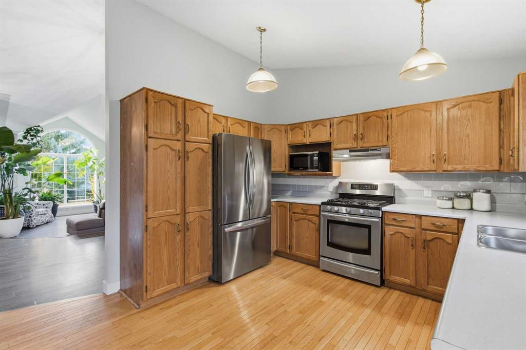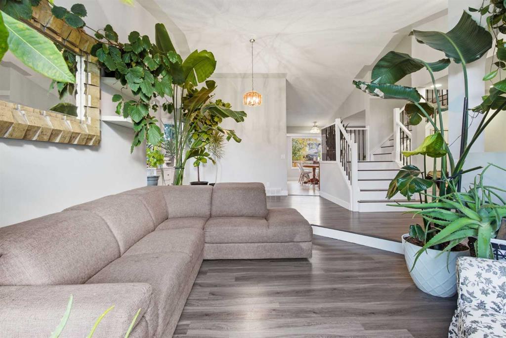 Where Chinook warmth meets Rocky Mountain cool. This is suburban living done with intention — just under 2,100 sq. ft. of open, light-filled space in one of Calgary’s most established communities. The moment you walk in, the line of sight says everything: front door ? custom staircase ? backyard. It’s a visual runway of calm and connection.The vaulted ceilings rise above the west-facing family room and formal dining, catching golden-hour light that spills into the home — a wide, functional space designed for real life. Think generous prep zones, storage that actually stores, and a kitchen sink framed by backyard views (because yes, the best family homes are built around that window).A wood-burning fireplace with gas starter brings romance to the winter months, while main floor laundry and a fourth bedroom/office deliver everyday practicality. Upstairs, three more bedrooms keep the family close — without feeling crowded.Fresh paint, new vinyl floors, and baseboards reset the tone, but it’s the behind-the-scenes upgrades that make this home truly next level: dual high-efficiency furnaces (2018), twin A/C units, Trane CleanEffects air cleaner (2021), water softener and reverse osmosis system (2023), and full poly-B to PEX replacement.Out back, low-maintenance turf, pavers, a BBQ gas line, and a hot tub make this yard your year-round escape. Even the garage comes finished — insulated, drywalled, and painted — because in Calgary, that’s more than a perk; it’s a power move.88 Woodford Close SW — a home that blends function, flow, and a little firelight.