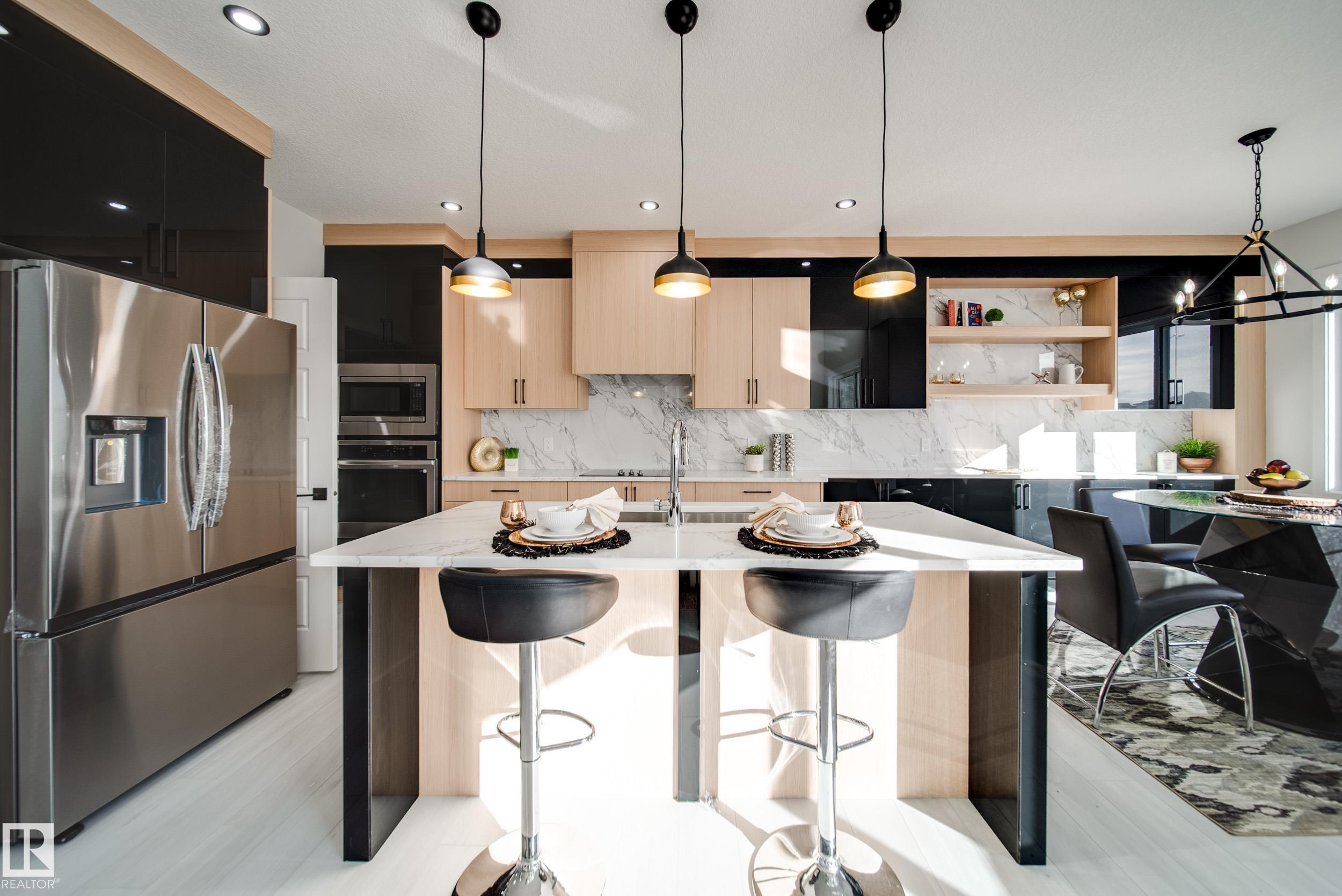 Welcome to livable luxury by Active Homes, where thoughtful design & premium UPGRADES come standard. Greeted by a BRIGHT, open concept floor plan feat. 9' ceilings on all levels, LUXURY vinyl plank flooring, & CUSTOM millwork feature walls that elevate every space.The chef inspired kitchen is the heart of the home, including a FULL APPLIANCE PACKAGE, two toned cabinetry, upgraded tile backsplash, QUARTZ counters, & a SPICE KITCHEN. A main floor bedrm/den offers flexibility for guests or home office, while the OPEN TO ABOVE great room floods the main floor w/natural light. Upstairs, 3 LARGE bedrooms, including dual primary retreats each w/its own private ensuite, plus a SPACIOUS bonus room for movie nights & relaxing. With upscale craftsmanship throughout, a SEPARATE SIDE ENTRY, and a layout ideal for families or multigenerational living, this move in ready home delivers style & function. Located in a quiet, family friendly community surrounded by ponds, parks, trails, and minutes to ALL amenities.