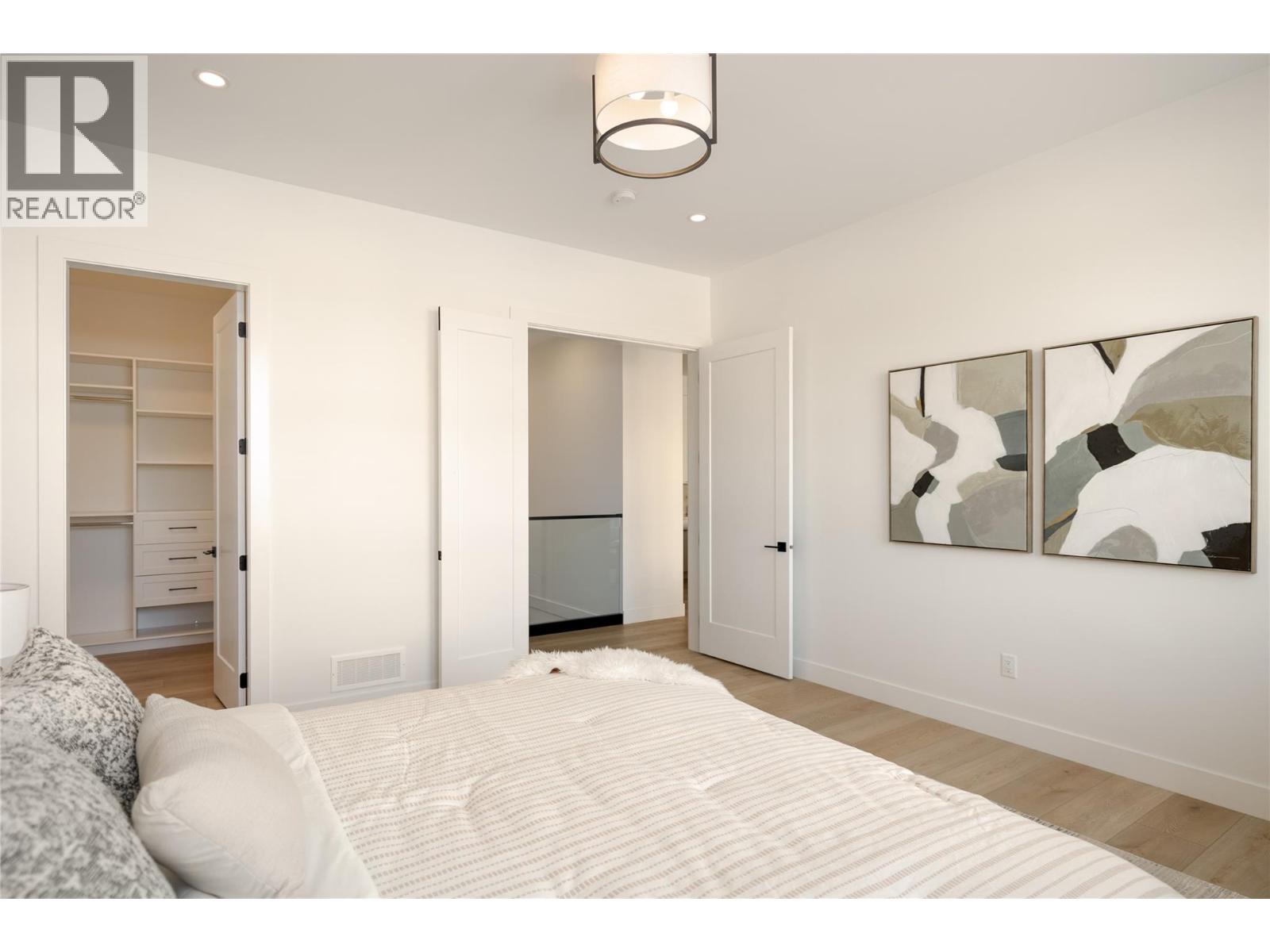 This beautiful nearly new custom home in Black mountain has a fantastic layout with a modern coastal design vibe. Featuring 3750 square feet, 6 bedrooms plus an office, 4 full bathrooms, a pool sized back yard and a 2 bedroom legal suite, this home checks the boxes. The open concept layout includes a chef's kitchen with a massive quartz island & walk-in pantry, a spacious dining area, and a bright living room with a gas fireplace that opens up to the large covered patio. Designed with families in mind, the main level has 3 bedrooms including a gorgeous primary room with a spacious walk-in closet & a 5-piece en-suite, complete with a free standing tub and walk in shower. Another full bathroom, laundry room, and double car garage complete this level. The lower level is the perfect place for R&R, hosting a large rec area with a wet bar, a second fireplace, and a 'wet zone', featuring a cedar sauna and a steam shower! A bedroom and office or bonus room complete this space. The 2 bedroom legal suite has it's own separate entrance & laundry, and is very bright. This lovely family friendly neighbourhood is close to the golf course, ski hill and about 10 minutes to shopping in Kelowna. NO GST!!