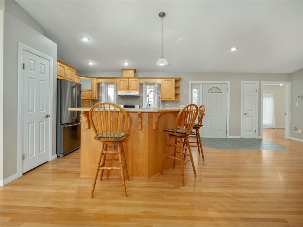An acreage in Park Lake Estates (with Municipal Water!!) is available! This one owner walkout bungalow on 1.7 acres is ready for its' new owner to enjoy all it has to offer. The quality speaks for itself as the house was built with concrete block construction, has a metal roof and there are solar panels that make electricity bills very manageable and also underground sprinklers. There are two bedrooms up and two in the walkout level allowing for privacy for your family. Primary bedroom has door to patio overlooking the backyard. The enclosed sunroom offers you a great gathering spot being protected from the weather ... also would be awesome for gardeners starting their plants in the spring! The lower level has in floor heating, the main floor is heated by a forced air furnace. There's oak hardwood, wood parquet and ceramic tile flooring plus the floor plan is open concept in the living, dining and kitchen areas. The warmth of the maple cabinets in the kitchen and gas fireplace in the living room make these areas welcoming. A large heated attached double garage with two separate garage doors plus a large shop in the rear of the property give you ample room for storage. There is a $200.00 per month charge which includes all household water, garbage pickup, and irrigation water pump electricity. The fee for irrigation water (from Park Lake) is approximately $500.00 per year. This is a great property to enjoy all the country feels! Please call the agent of your choice for a private viewing.