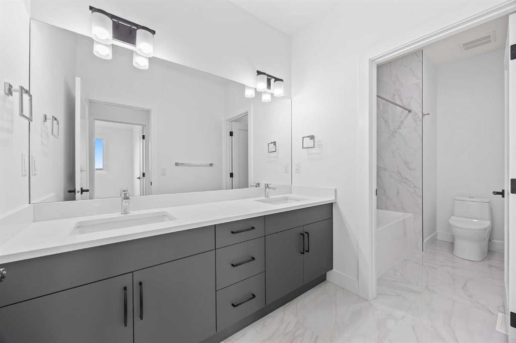 Welcome to the brand new development of Knightsbridge in Cambridge Park. Minutes away from access to Stoney Trail and East Hills shopping centre. The EDEN is a stunning estate home designed to blend luxury and practicality. Set on a generous 6027 sq ft lot, this home provides an expansive backyard and a side-drive triple car garage. These are not your typical cookie cutter homes. With 3,502 sq ft of living space, this custom-built masterpiece features 5 spacious bedrooms and 4.5 beautifully designed bathrooms, offering ample room for family and guests. This home is loaded with upgrades including: Main floor full ensuite bath as well as an added powder room, Jack and Jill ensuites for added convenience, High ceilings & a Spice kitchen to enhance your culinary experiences. Inside, the main floor exudes elegance with rich hardwood flooring and 9 ft ceilings with 8 ft doors, and striking black-framed windows that invite natural light. The gourmet kitchen is a chef’s dream, complete with an oversized island, a secondary spice kitchen, sleek stainless steel appliances. An open concept formal dining and living area set the stage for gatherings. The main floor also includes a flex room as well as a 4 pc ensuite bathroom. The primary suite on the upper floors is a true sanctuary with a freestanding tub and a custom-built closet. The home’s thoughtful design continues with 3 more generous sized bedrooms on the second floor, a bonus room for entertaining, a Jack & Jill ensuite bathroom for convenience, as well as a second floor laundry room. . Step outside to enjoy a completed rear deck with steps leading to a private outdoor oasis. This home also offers a triple attached garage allowing plenty of space for extra parking. This community is within minutes to Calgary, Chestermere, and East Hills, 18 minutes to Downtown Calgary, and provides quick access to Stoney Trail, Highway 1, and McKnight Blvd making it easy to get anywhere in and around the city. Located near shopping centres, public and private schools, Khalsa school's, parks, and many other amenities, while still offering quiet country-living with wide open green spaces, walking paths, and playgrounds.