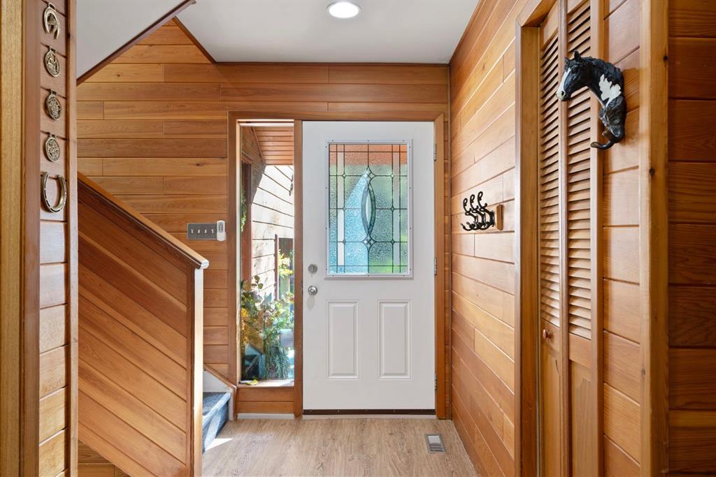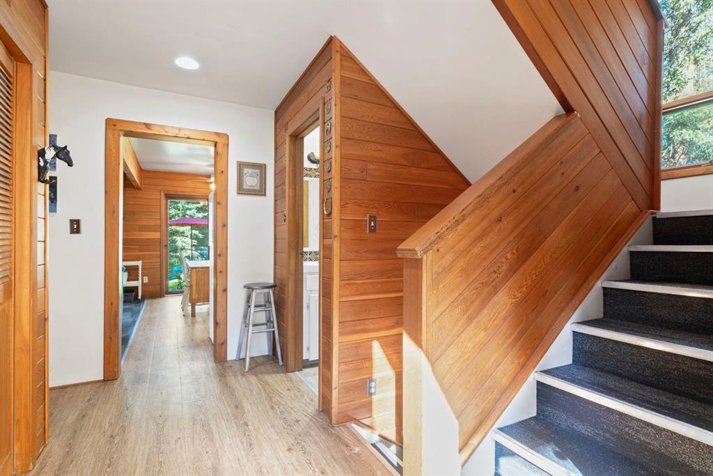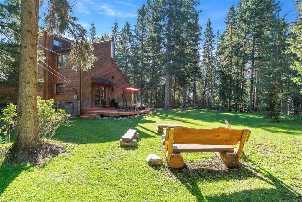 Escape to your own private 2.51 acre woodland paradise with this charming 4-bedroom, 2-bathroom home set on a beautifully treed lot in the serene Benchlands community. Nestled among towering evergreens, this property offers peace, privacy, and the perfect blend of rustic charm and modern comfort. Inside, warm wood accents and vaulted ceilings with skylights create a bright, inviting atmosphere. The sun filled living room features large windows overlooking the forest and a cozy airtight wood burning stove set against a stone feature wall. The spacious kitchen offers ample cabinetry, a gas stove, and direct access to the outdoors, ideal for both everyday living and entertaining. Bedrooms are generously sized, and bathrooms include unique touches such as vibrant tile work and wood finishes. The property includes an oversized detached garage with space to park 2 cars plus workshop space for quads or motorbikes, or woodworking, plenty of parking with a carport also attached to the house. Lush green space for outdoor activities, and the ability to have 2 horses onsite with corrals and horse shelter already in place. With its private driveway, fire pit area, and direct access to nature, this home is perfect for year-round living or a weekend getaway with easy access to the Waiparous area crown lands and the Ghost River just a few minutes walk from your front door. Call to book a showing today. New Starlink internet system just installed and will be left with the property. New roof 2024, new flooring 2024, new paint.