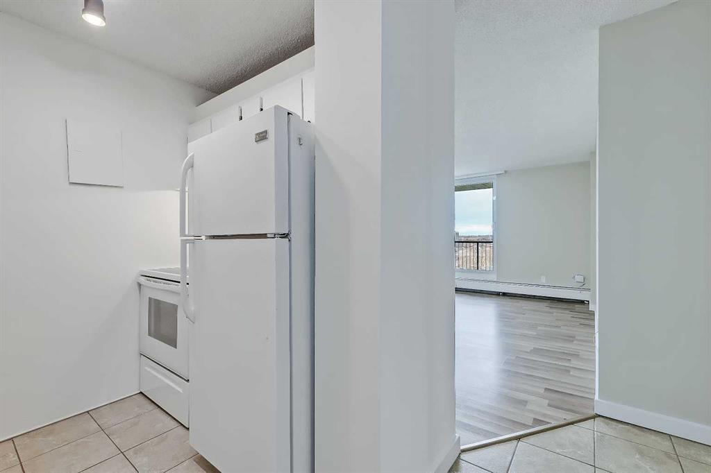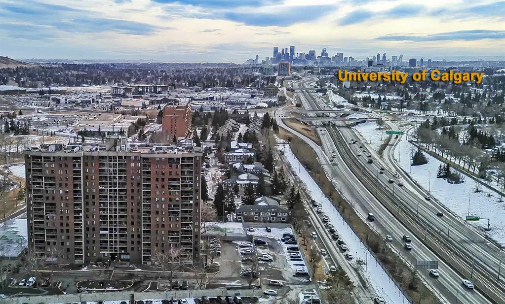 Year-round sunny NW-facing balcony with gorgeous city AND mountain views! Over $25K in new interior updates, and it is perfectly move-in ready from all the updates! This bright and airy 2-bed, 1-bath corner unit offers exceptional value, comfort, and convenience in one of NW Calgary’s most established communities. Ideal for students, young professionals, first-time buyers, or investors looking for a high-income, low-maintenance property near the University of Calgary, Foothills Hospital, Children’s Hospital, Market Mall and the new Calgary Cancer Centre can be extremely recession-resistant in your rental portfolio. Inside, a welcoming foyer with an oversized storage closet leads into a functional, well-planned layout designed for easy living. The kitchen features all of the essential appliances, including an updated stove, ample cabinetry with updated hardware, and a dual-basin stainless steel sink. The adjacent living room is bright and spacious, framed by large windows that fill the space with ample natural light. Step directly onto the private balcony to enjoy fresh air and beautiful mountain views, great for unwinding after a long day. Both bedrooms feature newly carpeted floors, creating comfortable and quiet retreats. The 4-piece bathroom features a vanity with storage, a tub/shower combo with tile surround, and tiled flooring. Additional updates throughout the home include laminate flooring in the living area, freshly patched & painted walls and ceilings, painted baseboards, and more! Plus, the oversized storage room off the foyer could accommodate future in-suite laundry if desired. Adding even more value, this unit includes an assigned covered parking stall in the parkade, a rare and highly desirable feature for this building. Residents of The Fortress enjoy fantastic amenities, including an indoor saltwater swimming pool, fitness center, and tennis courts. Secure bike storage is also available. Located steps from the Dalhousie C-Train station, shopping, restaurants, and parks. And with quick access to major routes, the University of Calgary and SAIT, Market Mall, Foothills Medical Centre, and downtown, you’ll be where you need to be in a breeze. This condo offers an unbeatable lifestyle and excellent long-term value. All that’s left to do is move in!