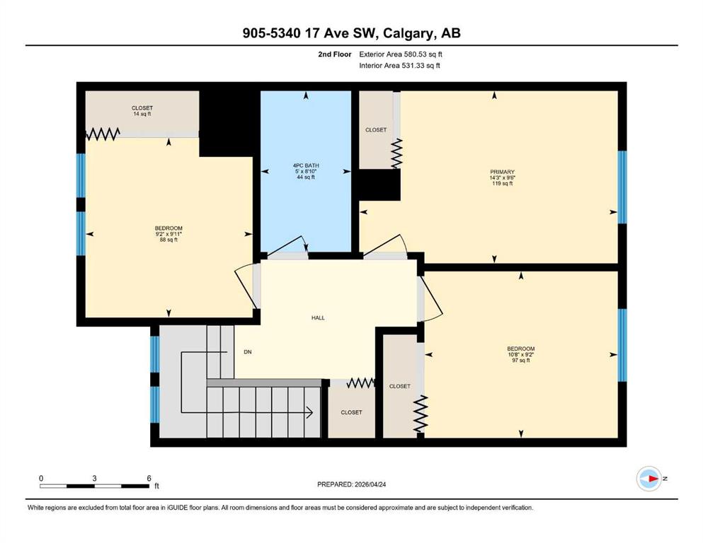 | Bedroom - Primary | 9`6" x 14`3" | Upper |