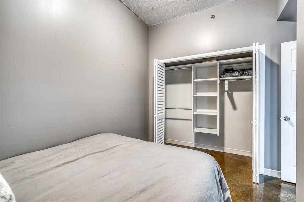An incredible opportunity to own a thriving Airbnb with all furniture and furnishings included in Calgary's vibrant Downtown Beltline District! Bathed in natural sunlight, this stunning West-facing residence in the highly coveted, Colours by Battistella building effortlessly blends industrial style with contemporary elegance. Boasting 2 bedrooms and 1 bathroom, this unit features soaring 9-foot ceilings, polished concrete floors, and dramatic steel-framed floor-to-ceiling windows that frame incredible city views. The sleek kitchen is a delight with granite countertops and stainless-steel appliances, while conveniences such as in-suite laundry and central A/C ensure year-round comfort. As an established Airbnb property, this unit allows you to seamlessly take over the reins and continue reaping the rewards of this venture. Perfectly positioned in the vibrant Victoria Park neighborhood, you’ll be just moments from downtown, Calgary Stampede Grounds, the Bow River, 17th Ave, and an array of Calgary’s trendiest spots—including Starbucks, Ten Foot Henry, and Proof—plus endless dining, nightlife, and entertainment options, all with public transit at your doorstep.