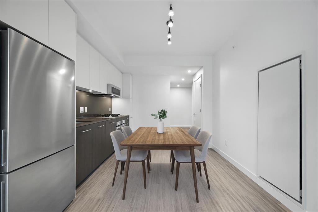 Elevate your lifestyle in this 9th floor residence at First & Park, Eau Claire’s newest luxury condo. This 2 bedroom, 2 bathroom home offers sophisticated design and sweeping north-facing views, creating a calm retreat above the city. The open layout features a modern chef’s kitchen with quartz countertops, integrated appliances, and stylish finishes, flowing seamlessly into a sun-filled living space framed by floor-to-ceiling windows. The primary suite is complete with a spa-inspired ensuite, while the second bedroom and full bath provide comfort for guests, family, or a home office. With titled underground parking and secure storage and building amenities including: upscale gym & yoga studio (outdoor space beside with gas bbq hook ups), party lounge, modern co-working space and concierge. Step outside and enjoy the best of Calgary’s downtown — the Bow River pathways, Peace River Bridge, Prince’s Island Park, and vibrant dining and shopping are just moments away. Perfect for professionals, downsizers, or those seeking a lock-and-leave lifestyle, this is urban living at its finest. ** Upon purchase, the buyer may select a titled parking stall and a titled storage unit of their choice.