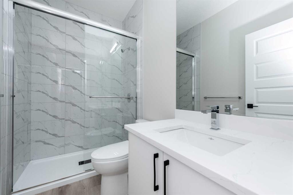 *QUICK POSSESSION* - FULL BATH ON MAIN FLOOR, FRONT DOUBLE GARAGE , 3 Bedrooms + Bonus Room + Den | 3 Full Baths | The popular Kai model, on a 33 feet wide lot, situated in the Waterford Community, minutes from the Chestermere lake. Experience the epitome of open concept living, featuring upgrades such as 9 ft Ceilings on main floor and basement, metal spindles on railing, 3cm quartz countertops, LVP flooring, under mount sinks convenient upstairs laundry and so much more! Great room includes an electric fireplace which adds style and warmth perfect for chilly nights. The kitchen is completed with a big island, perfect for gathering families and friends, soft close cabinets and drawers throughout, spacious pantry plus extra counter space and Samsung appliance package. The dining nook is large enough to host a dinner for a big family. Upstairs, indulge in the comfort of your perfectly sized central bonus room, ideal for streaming your favourite movies. Retreat to the spacious master suite with an ensuite and walk-in closet, for a relaxing escape. The two secondary bedrooms, a 3-piece common bath and conveniently located laundry room complete the upper level. The basement is unfinished but comes with 9 feet ceilings, separate side entrance and a mechanical room in a corner. Proximity to CALGARY, schools, diverse retail and culinary delights are just some of the highlights. Call to book your showing now !!!!