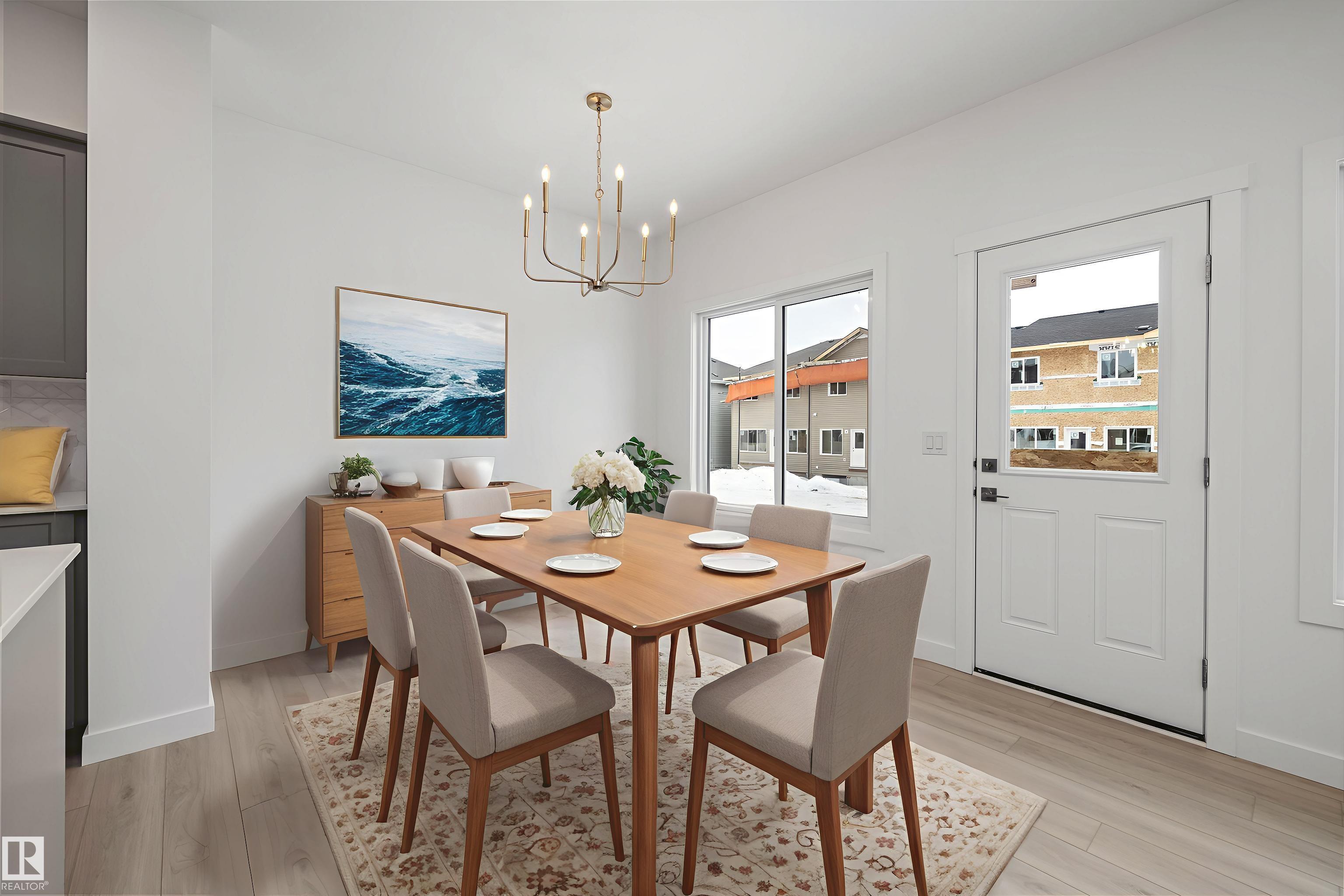 Experience the perfect blend of style and function in The Renew, a sophisticated half-duplex featuring 9-foot ceilings on both the main floor and basement levels. This open-concept home is finished with luxury vinyl plank flooring and a welcoming foyer that leads into a gourmet kitchen. The kitchen is a standout with upgraded soft-close Thermofoil cabinetry, quartz countertops, a corner pantry, and a central island with a Silgranit undermount sink. High-end touches include a chimney-style hood fan, built-in microwave, and elegant pendant lighting. The great room, anchored by a modern electric fireplace, offers large windows and access to the future deck. Upstairs, you will find a versatile bonus room, dedicated laundry, and three spacious bedrooms, including a primary suite with a walk-in closet and private ensuite. Complete with a separate side entrance, a double attached garage with a floor drain, and brushed nickel accents throughout, this home is move-in ready.