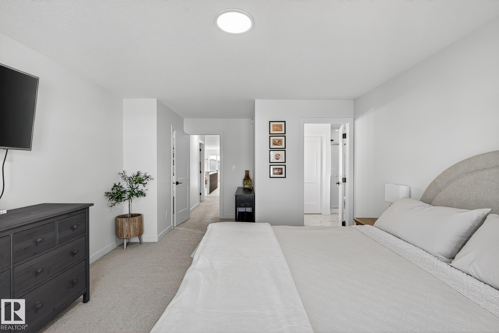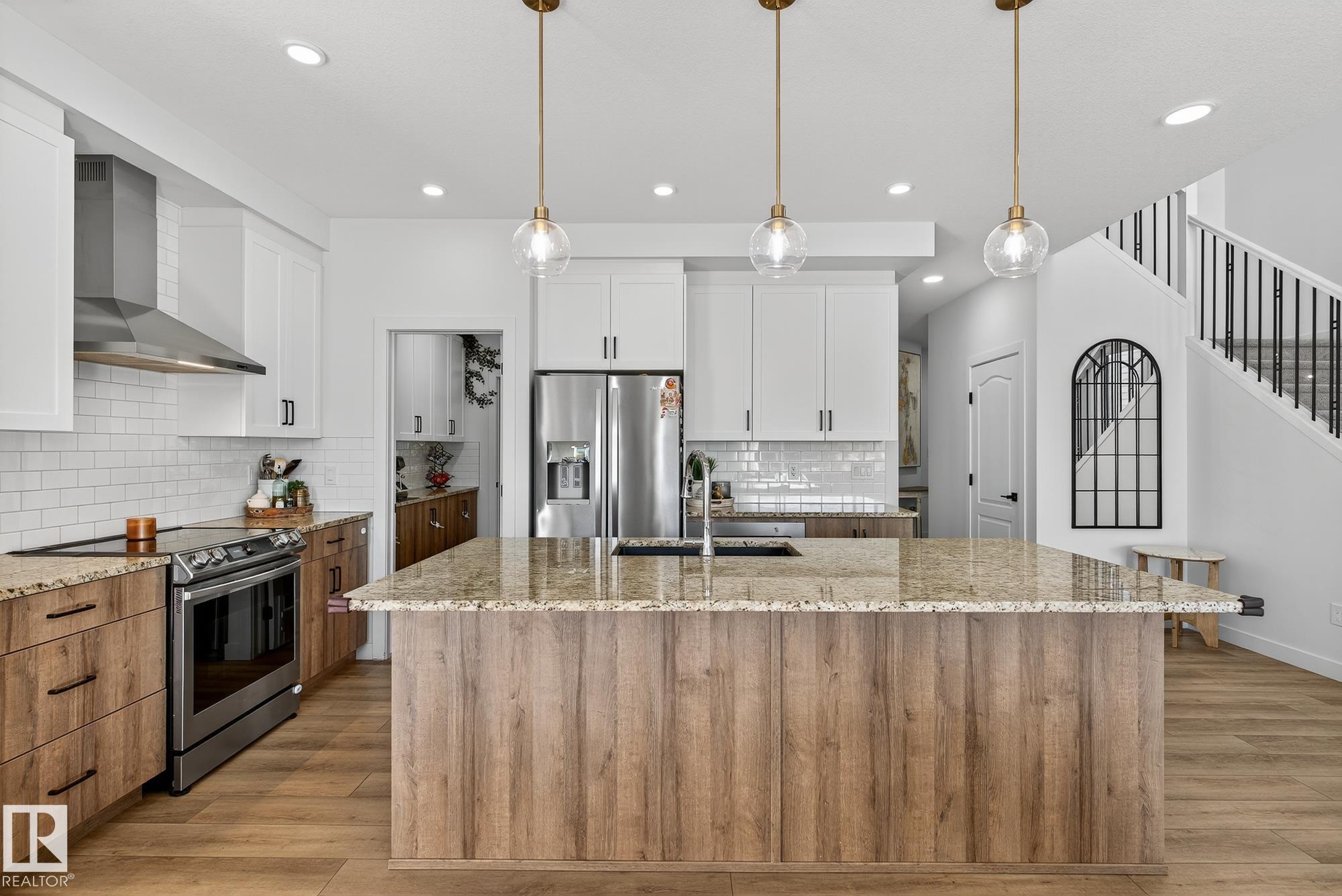 STUNNING EXECUTIVE WALKOUT! Perfectly positioned in prestigious Klarvatten, this spectacular 2-storey with a LEGAL SUITE exudes modern elegance & exceptional craftsmanship. Designed for luxury living, it features rich flooring, A/C, duel furnace, designer lighting & a stunning custom floor plan with architectural details. The chef’s kitchen is a dream—premium 2-tone cabinetry, quartz counters, butler’s pantry, island, breakfast bar, & top-of-the-line appliances. The open dining area leads to a massive deck with scenic walking trails, while the great room impresses with large windows & a sleek linear fireplace. A versatile office/bedroom, elegant bath, & custom mudroom complete the main level. Upstairs offers a stylish bonus room, laundry, & 3 bedrooms including a serene primary suite & spa-inspired ensuite. The bright, luxury legal suite below features a modern white kitchen, quartz counters, w/out patio to a SOUTH backyard. HEATED o/s garage, huge driveway & pristine landscaping—TRULY A TURN KEY HOME!