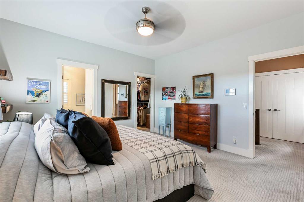 Welcome to this exceptional custom-built home, perfectly situated in one of Calgary’s most sought-after inner-city communities. Boasting over 2,600 sq. ft. of meticulously designed living space, this home blends refined craftsmanship with modern elegance — all just minutes from downtown. Step through the welcoming front entrance into an open-concept main level featuring 9-ft ceilings, rich hardwood floors throughout, and a designer staircase that seamlessly connects the home’s beautiful living spaces. The living room exudes warmth and style, anchored by a floor-to-ceiling tiled gas fireplace — a perfect focal point for cozy evenings. Custom built-in cabinetry adds both charm and functionality, creating a space designed for comfort and connection. The dining area offers an elegant setting for gatherings, while the chef-inspired kitchen is truly a showpiece — complete with a massive quartz island, premium stainless steel appliances, extended cabinetry, and abundant storage. Whether you love to entertain or cook with family, this kitchen delivers both form and function. From the kitchen, step outside to your professionally landscaped, low-maintenance backyard — fully fenced, south-facing, and exceptionally private. The extended patio creates the perfect space for outdoor dining and relaxation in the sun. Upstairs, discover three spacious bedrooms, each designed for rest and relaxation. The primary suite is a private retreat, featuring a spa-inspired ensuite with a dual vanity, soaker tub, tiled glass shower, and a generous walk-in closet. Large windows and custom window coverings complement the 9-ft ceilings, bathing each room in natural light. The upper-level laundry adds additional convenience. Downstairs enjoy the fully developed basement extending the home’s versatility — rec room with built-in surround sound, fourth bedroom and/or home gym with a murphy bed, and a stylish four-piece bathroom completes this space. Additional luxury upgrades include Air Conditioning, GEM Stone exterior lighting (never hang Christmas lights again), central vacuum system, and more. Located in vibrant Currie Barracks, you’re surrounded by parks including outdoor rink, splash pad, playgrounds, walking paths, schools, and local amenities — plus easy access to the downtown core in under 10 minutes. Bonus ** Approved City Development Permit for a future Carriage Home — an incredible opportunity for added value or income potential. Experience the craftsmanship, comfort, and lifestyle this remarkable home offers.