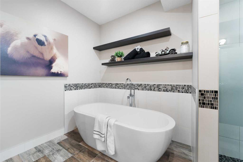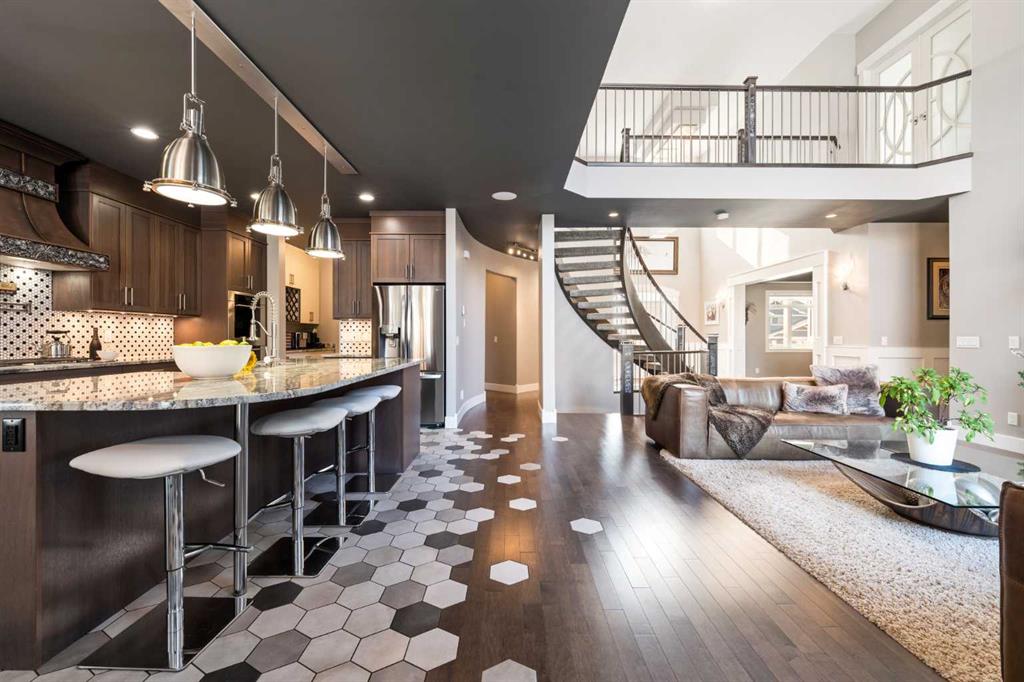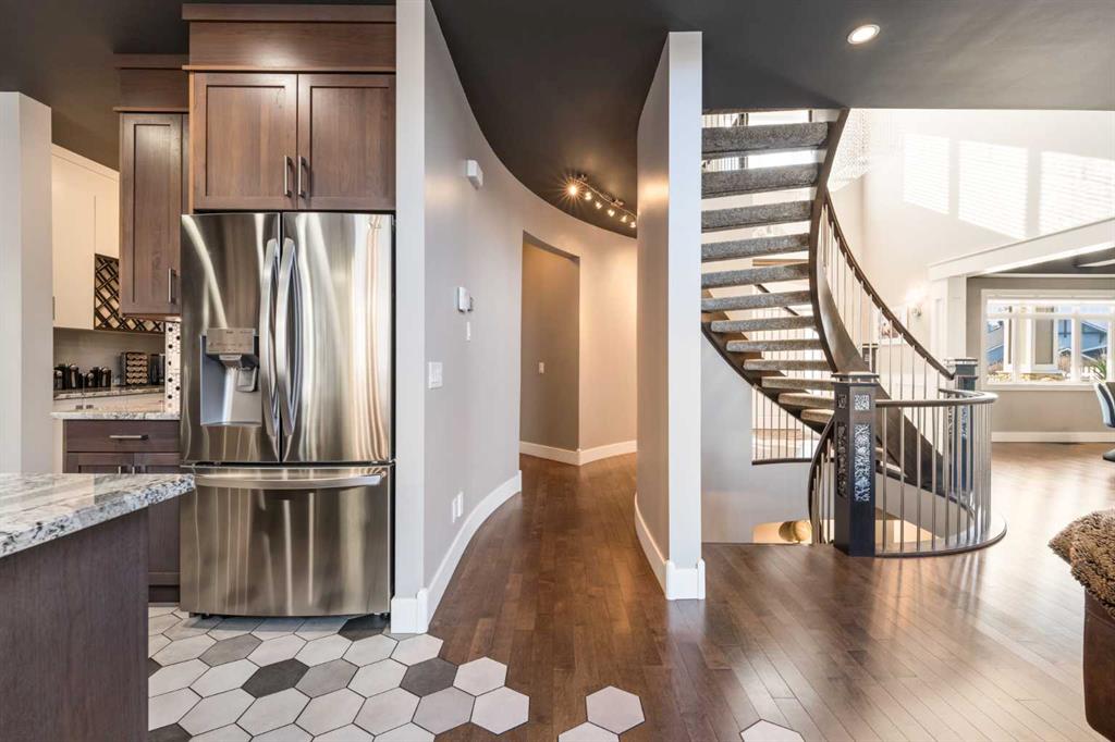 EXPERIENCE ELEVATED LAKESIDE LIVING in this IMPRESSIVE, CONTEMPORARY ESTATE just across from the water in beautiful Chestermere. Perfectly positioned on a sprawling 1/3 ACRE LOT with LAKE VIEWS, this home offers the ultimate blend of luxury, space, and lifestyle—paired with the everyday convenience of LAKE LIFE, close to all schools, and set on a QUIET, LOW-TRAFFIC STREET. A dramatic OPEN-TREAD, SWEEPING SPIRAL STAIRCASE makes a stunning first impression, showcasing intricate DETAIL that will truly leave you in awe. The GRAND TWO-STOREY GREAT ROOM features soaring vaulted ceilings, a catwalk overlook, and EXPANSIVE WINDOWS that fill the home with NATURAL LIGHT. A striking TWO-SIDED, FLOOR-TO-CEILING STONE FIREPLACE creates a warm, sophisticated focal point shared between the great room and a PRIVATE DEN with garden doors leading to the rear deck and beautifully landscaped yard. The FRONT DINING ROOM is perfectly designed for hosting LARGE GATHERINGS, while the Dining space in the Kitchen adds both style and functionality. Rich HARDWOOD FLOORING with CUSTOM TILE INLAYS and UPDATED KITCHEN CABINETRY elevate the space, while the chef-inspired kitchen features TWO WALL OVENS, a GAS COOKTOP, premium appliances, and a SHOWSTOPPING CUSTOM HOOD FAN with incredible detail. The expansive 10’8” x 7’ BUTLER’S PANTRY ensures effortless entertaining. You’ll also appreciate the abundance of practical space with a generous LAUNDRY AREA, MUDROOM, and additional storage. Upstairs, ALL 4 BEDROOMS are generously sized—ideal for growing families—and the thoughtfully designed JACK & JILL BATHROOM offers both convenience and function. The PRIMARY RETREAT is a true escape, featuring a spacious WALK-IN CLOSET and a LUXURIOUS 5-PIECE ENSUITE. View of the lake and West Sun make the room perfect for a Restful Sleep! The Bonus Room is spacious and provides an extra space to unwind! The FULLY DEVELOPED LOWER LEVEL is designed for ENTERTAINING, complete with a PRIVATE MEDIA AREA and BAR, a SPA-INSPIRED BATHROOM with WALK-IN SHOWER, SEPARATE SOAKER TUB, and DUAL VANITIES, along with a FIFTH BEDROOM Separate Gym Area plus STORAGE/MECHANICAL SPACE. Step outside into your own BACKYARD OASIS—meticulously landscaped with THREE PONDS, mature trees, shrubs, and perennials, all maintained by a 5-ZONE UNDERGROUND IRRIGATION SYSTEM. Enjoy outdoor living on the FULL-WIDTH REAR DECK and gather around the GAS FIREPIT in a setting designed for relaxation and connection. Enjoy FRONT LAKE VIEWS and AFTERNOON SUN from your COVERED FRONT DECK—an ideal space to unwind and take in the beauty of the surrounding community. Additional highlights include TWO AIR CONDITIONING UNITS, a FULLY FENCED YARD with DOG RUN, and an OVERSIZED TRIPLE GARAGE designed with space for STORAGE and CAR LIFTS. The MASSIVE PAVED DRIVEWAY extends beyond the home, offering ample parking and dedicated RV SPACE. THIS IS TRUE EXECUTIVE LIVING—WHERE DESIGN, FUNCTION, AND LIFESTYLE COME TOGETHER SEAMLESSLY. JUST MOVE IN AND ENJOY.