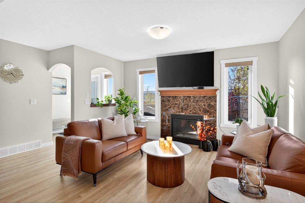 **OPEN HOUSE SAT Oct 4th 12 to 2pm & SUN Oct 5th 1 to 4pm**Step inside and you’ll immediately notice the brand-new luxury vinyl plank flooring throughout the entire home, including the stairs – giving the space a fresh, modern feel. The open layout flows beautifully, offering both comfort and functionality for everyday living. Upstairs, you’ll find generous-sized bedrooms, a bright family bonus room, and the convenience of an upper-level laundry room. This home sits on a perfectly placed lot – with no neighbours in front or behind you! Instead, enjoy peaceful views and a beautiful backyard that backs onto a walking path, perfect for evening strolls with the kids. The unspoiled basement is ready for your ideas with rough-ins, and a 2 large windows that could make way for another bedroom or 2 – ideal for multigenerational living or growing families. King’s Heights is one of Airdrie’s most sought-after communities with quick access to HWY 2 via the new 40th Avenue Interchange, plus nearby schools, shops, and restaurants. ?? All in all, this home is updated, inviting, and ready to welcome you. Book your showing today – you won’t want to miss it!