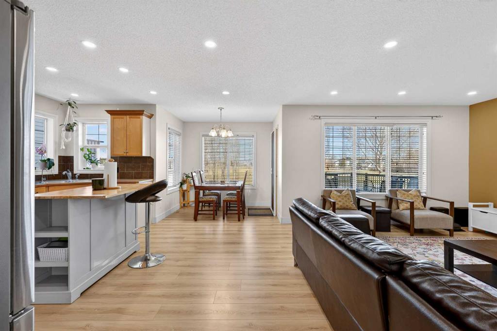 3 Bedrooms | 2.5 Bathrooms | 1,813 Sq Ft Above Grade | Backs Onto Soccer Fields & School | Main Floor Office | Expanded Concrete Driveway. Welcome to this well-maintained two-storey home in the desirable community of Sagewood in Airdrie, offering 1,813 sq ft above grade with a functional and family-friendly layout. One of the standout features of this home is its location, backing directly onto soccer fields and a school. Enjoy open views, added privacy, and direct access to green space, making it an ideal setting for families. Inside, the home offers a bright and practical layout ideal for everyday living. The main floor features a dedicated office space, perfect for working from home, along with open living and dining areas that flow seamlessly for both daily living and entertaining. Upstairs, you’ll find three spacious bedrooms, offering a great separation between living and private spaces. Extensive recent upgrades add immediate value and peace of mind, including a BRAND NEW FURNACE (DECEMBER 2025), 48-HOUR WATERPROOF LAMINATE FLOORING INSTALLED THROUGHOUT (2021), ALL TOILETS REPLACED (2022), and a NEW STOVE AND MICROWAVE (2025). The exterior has also been enhanced with an expanded concrete driveway for additional parking and improved curb appeal, along with concrete side steps leading to the backyard and a custom oversized planter for those who enjoy gardening. Clean, updated, and move-in ready, this Sagewood home is a great opportunity in a well-established, family-friendly community.
