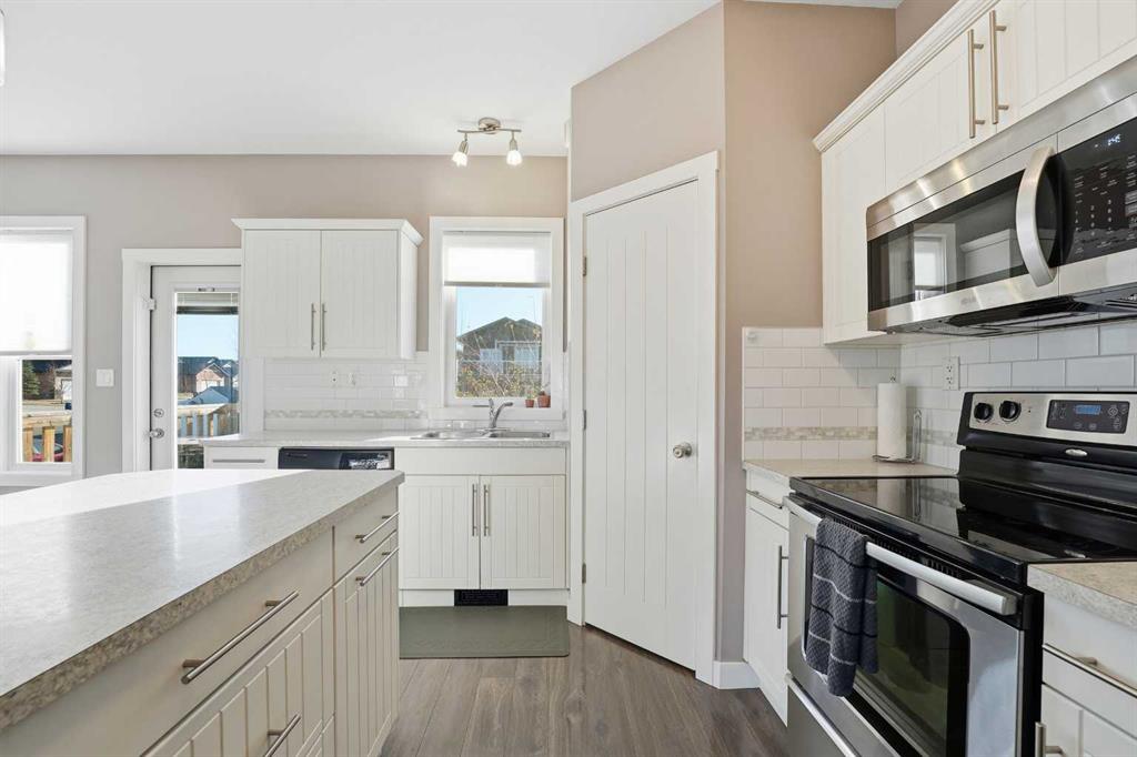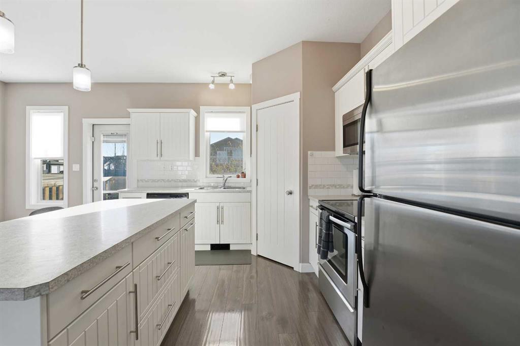 Step into this spacious open-concept bi-level home! You’ll be welcomed by a roomy front entry and soaring ceilings that create an immediate sense of space. Both the main and lower levels feature 9-foot ceilings, enhancing the bright, open feel throughout. The main floor offers a seamless layout with a modern kitchen that opens onto a deck overlooking the large, fully fenced backyard — complete with extra parking. You’ll also find a secondary bedroom, a full 4-piece bathroom, and the primary suite featuring its own ensuite and walk-in closet. Downstairs continues to impress with large windows, high ceilings, two additional bedrooms, and another beautifully finished 4-piece bathroom with stylish tile work. This home has a fresh, modern feel throughout with light carpeting, upgraded trim and doors, neutral paint tones, and recessed lighting. Built on an ICF foundation, it combines style, comfort, and lasting quality.