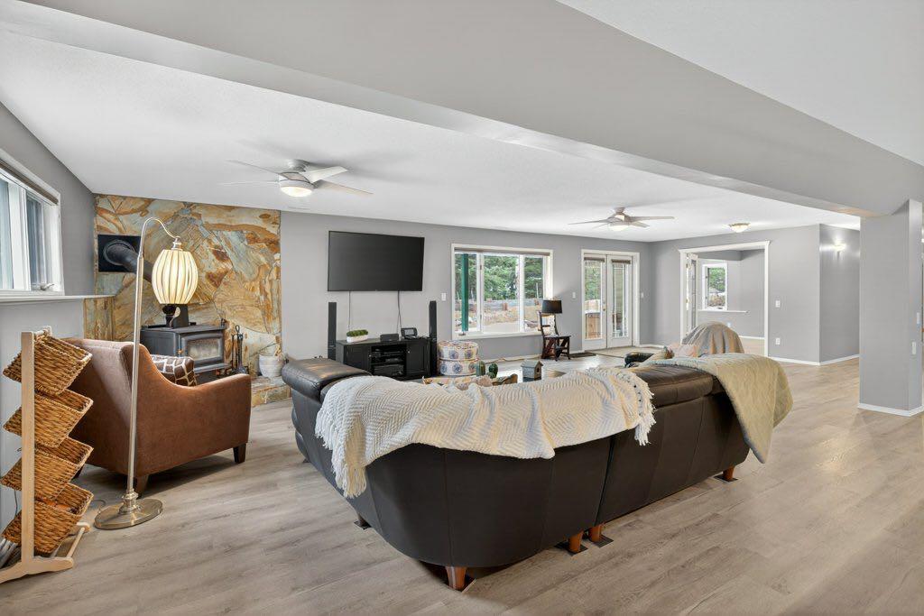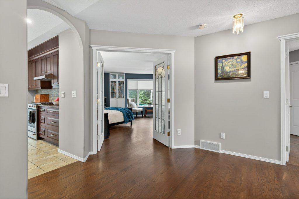 Set on 4.00 acres of mature trees in The Highlands of West Bragg Creek, this walkout bungalow offers a balance of space, functionality, and a quiet rural setting just minutes from the hamlet. With over 2,400 square feet above grade and a fully developed lower level, the home features five bedrooms and 3.1 bathrooms, with a layout that supports both day-to-day living and hosting family and guests . The main floor includes three bedrooms, a formal dining room, private office, and a spacious living area anchored by oak hardwood flooring and large windows that connect the home to its natural surroundings. The kitchen has been updated and provides ample storage and workspace with an island the size of, well, an island! It transitions into a breakfast nook and out to a large deck with glass railing—an ideal spot to take in the natural beauty and seasonal creek. Neutral paint throughout creates a cohesive, move-in ready feel, while Hunter Douglas honeycomb blinds add both style and efficiency. The primary suite includes an updated ensuite with in-floor heat and a curb-less shower, designed with comfort and accessibility in mind. An elevator lift connects the garage, main level, and walkout basement, offering flexibility for a variety of living needs. The lower level includes a large recreation space with a games area, a pool table (included), two additional bedrooms, and a second office that could also function as a bedroom. Practical upgrades include two newer furnaces. water filtration and reverse osmosis systems all within the past 7 years. The home is serviced by a well and septic system that has been maintained to ensure proper functioning. For those needing workspace or storage, the property is well equipped with a heated attached triple garage with high ceilings and room for car-lifts, a heated detached double garage/shop, and an RV parking port with electrical service. A lawn tractor with snow blower and mower attachments is also included, supporting year-round property maintenance. Beyond the property, the location offers direct access, within walking distance to some of Alberta’s most sought-after outdoor amenities. Trails in nearby Kananaskis Country and West Bragg Creek provide year-round opportunities for hiking, cross-country skiing, and mountain biking. The hamlet of Bragg Creek offers a range of local shops, restaurants, and services, along with a strong sense of community, all within a short drive. Calgary’s west edge is also accessible for commuting or additional amenities. This is a property that combines functional acreage living with access to both nature and nearby services, in one of the more established and desirable areas west of the city.