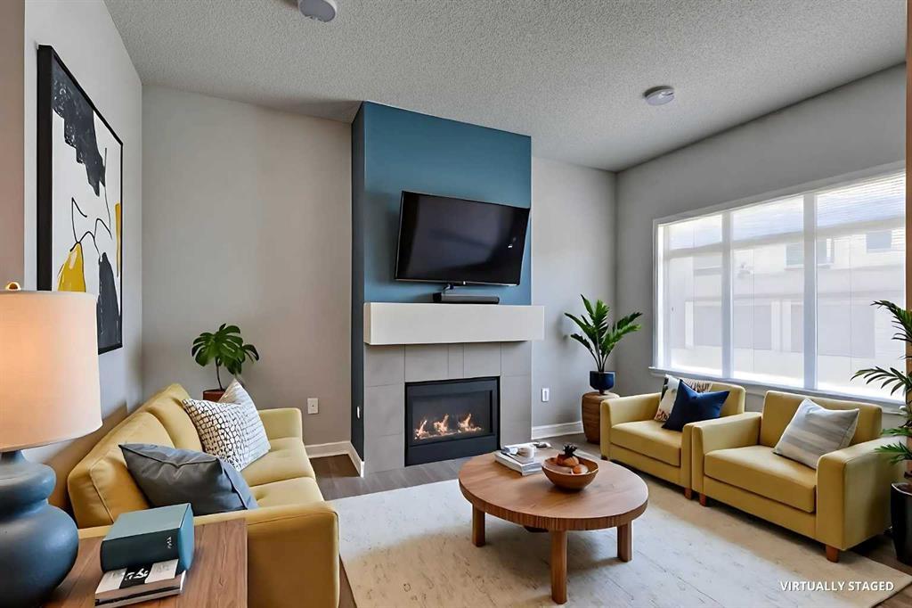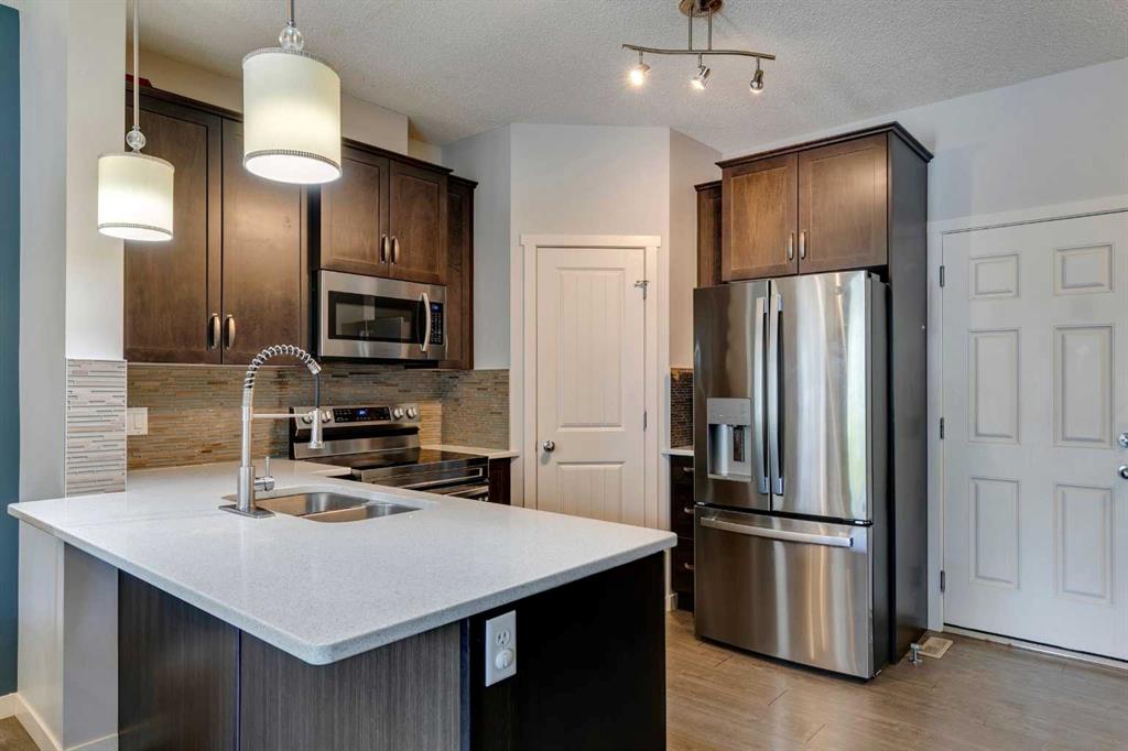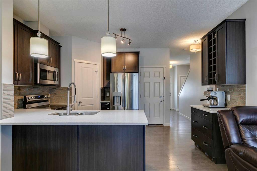 Welcome to your next chapter in the heart of Copperfield—this sun-filled end unit townhome offers modern convenience, thoughtful design, and unbeatable access to everything this vibrant SE Calgary community has to offer. From the single attached garage, central air conditioning, and fully finished basement, to being mere steps from scenic ponds, parks, playgrounds, pathways, and a bustling year-round community centre—this home has been crafted for connection, comfort, and ease. Surrounded by green spaces and multiple shopping hubs, you're also just minutes from Mahogany, Seton, McKenzie Towne, and New Brighton. Inside, the bright open-concept main floor welcomes you with large windows, durable laminate flooring, and a smart layout that makes entertaining effortless. Cozy up by the modern gas fireplace or stay cool in any season with built-in A/C. The stylish kitchen features quartz countertops, stainless steel appliances, a spacious peninsula with breakfast bar seating, and a generous pantry for extra storage. The adjacent dining area leads out to your private covered deck and poured concrete patio—a perfect setup for BBQs, gardening, or simply enjoying peaceful evenings overlooking community green space. Upstairs, the primary retreat offers a large walk-in closet and private 4-piece ensuite, while two more spacious bedrooms and a second full bath provide plenty of room for family, guests, or a home office. The finished basement adds even more flexibility with a large rec room that can serve as a movie lounge, playroom, fitness area, or guest space—tailored to fit your lifestyle. And outside? Whether you're hosting friends or watching the kids play on the nearby pathways and playground, this quiet corner of the complex gives you space to breathe, grow, and feel at home. Whether you're a growing family, busy professional, or anyone looking for that perfect balance of comfort, community, and convenience—this Copperfield gem checks all the boxes.
