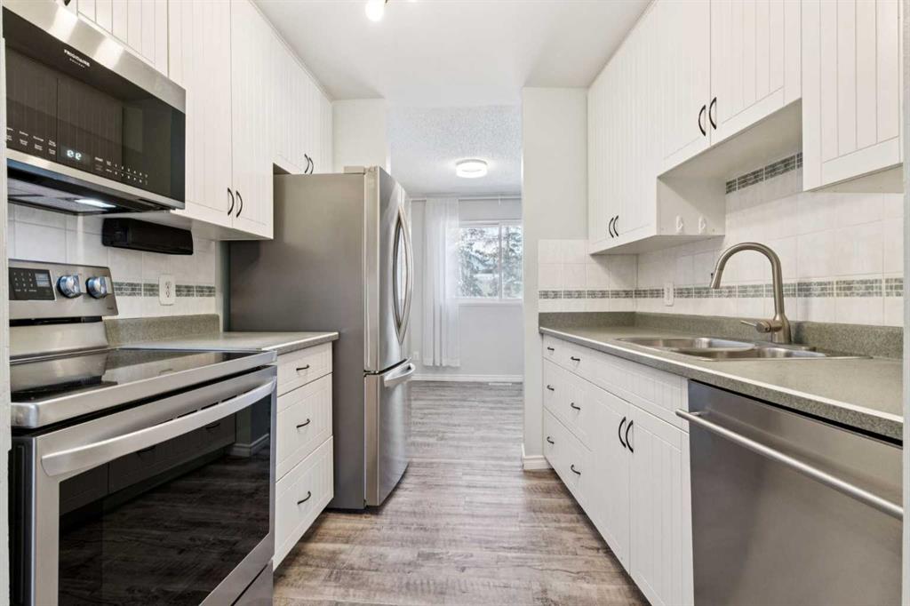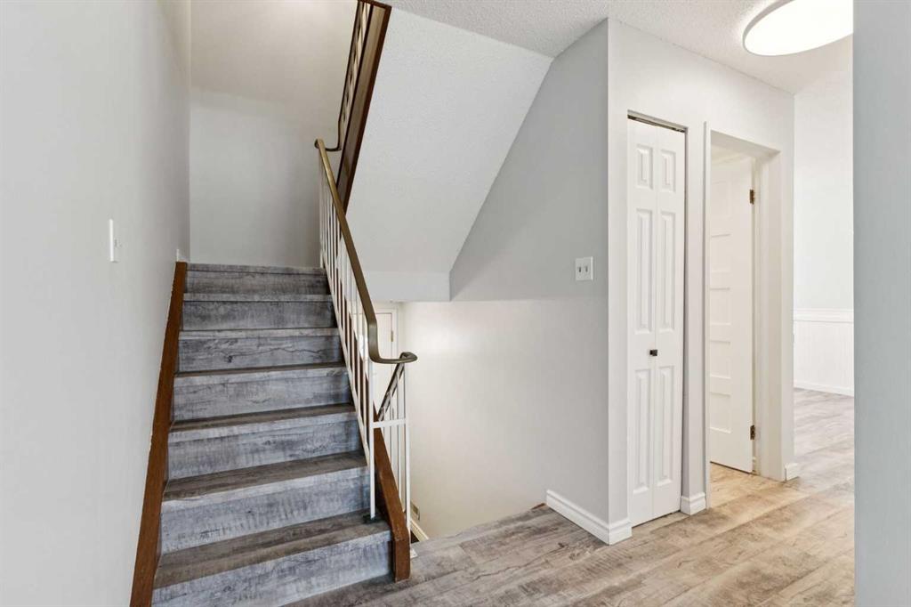 Welcome to Braeside & The Town Homes of Brae Glen. Great location! Over 1580 sq ft of living space. Many many upgrades include luxury vinyl flooring (2022), high efficiency furnace (2021), air conditioning (2021), front entrance door (2024), top floor new windows (2024), new appliances (2022), newer toilets (2022), new inside doors (2025), new paint in areas (2026), newer tiling and bathtub refinishing ( 2026), newer washer and dryer, newer baseboards (2022). Extensive upgrades. The home features a large backyard ( rare ). Also, a wide paved back lane for additional parking and access. Reasonable condo fees are $475. Self-managed. Well-maintained complex. Close to schools, shopping, Costco, Buffalo Run, the Southland Leisure Centre, transit, and easy access to major routes, parks, and walking paths. A must to view!!