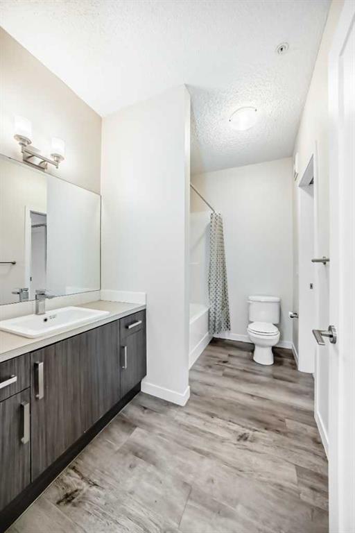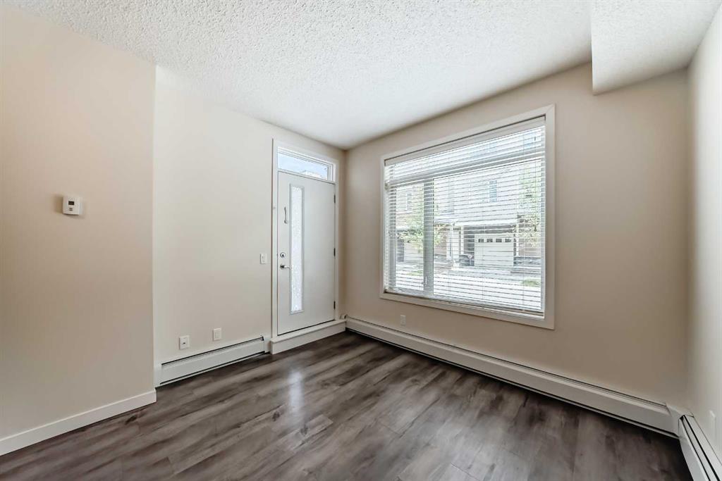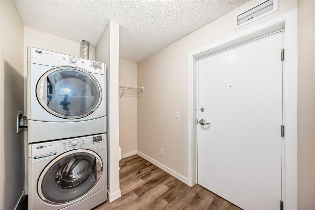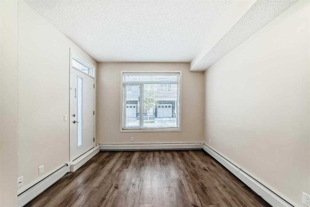Welcome to Eighty5Nine by Morrison Homes – stylish condo living in Calgary’s sought-after Upper West Side. This main-floor 1-bedroom unit features a private entrance, open-concept layout, luxury vinyl plank flooring, and a sleek galley kitchen with quartz counters and stainless steel appliances. A sliding barn door opens to a bright bedroom with a desk nook, large closet, and 4-piece bath. Enjoy in-suite laundry, ample storage, and your own titled heated parking stall with direct unit access. Relax on your front patio with BBQ hookup, or gather in the landscaped courtyard. Steps from shops, dining, transit, parks, and pathways, with easy downtown access and a quick escape to the Rockies – this is West Side living at its finest.