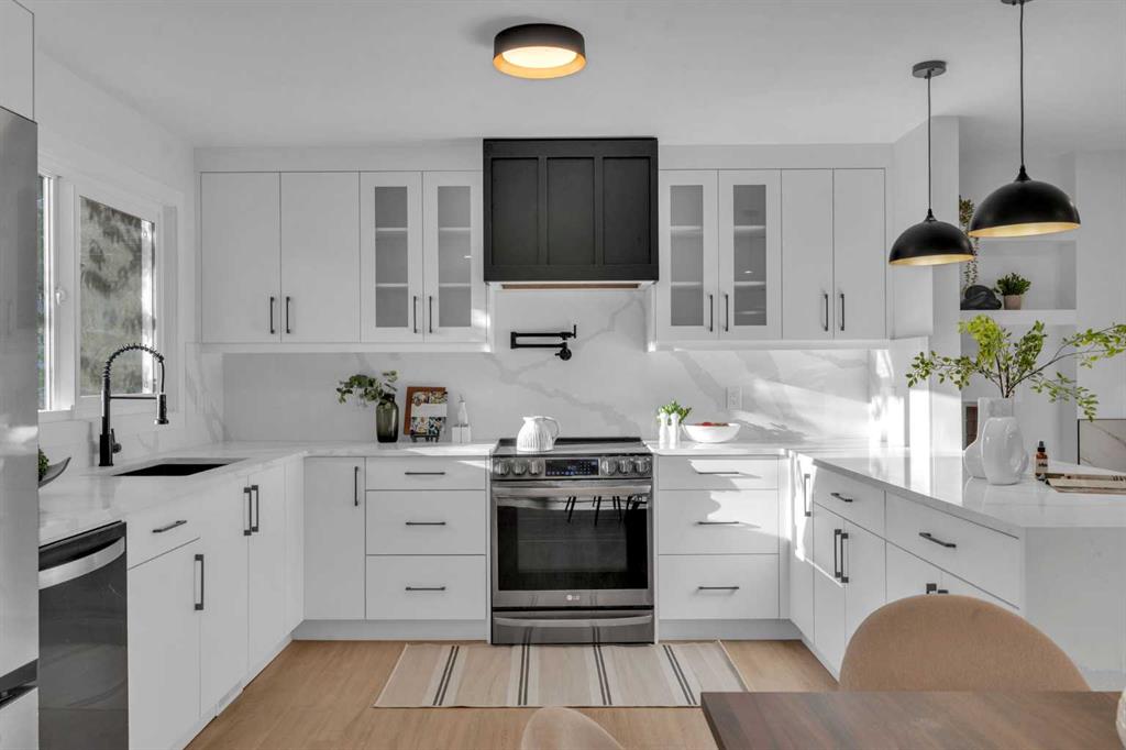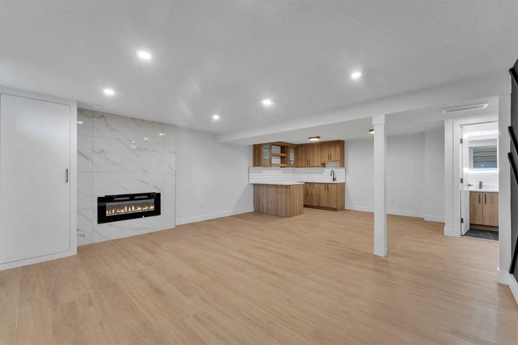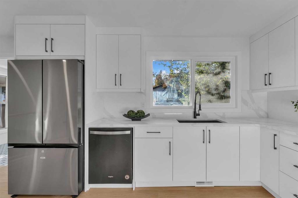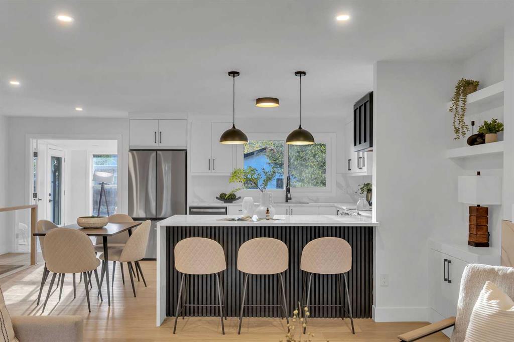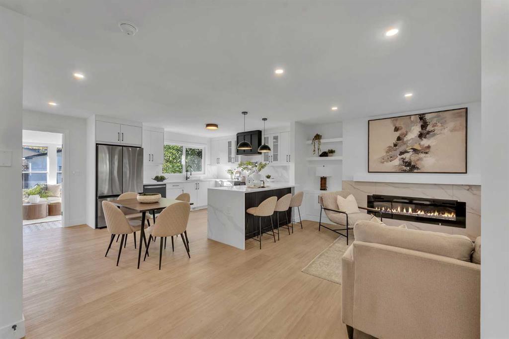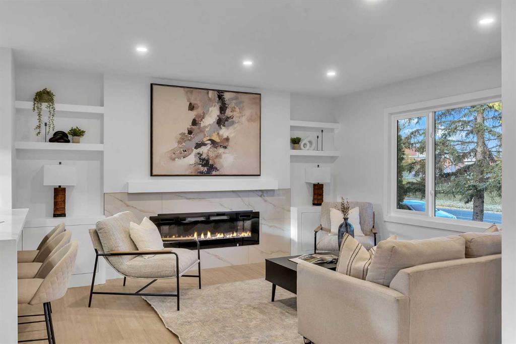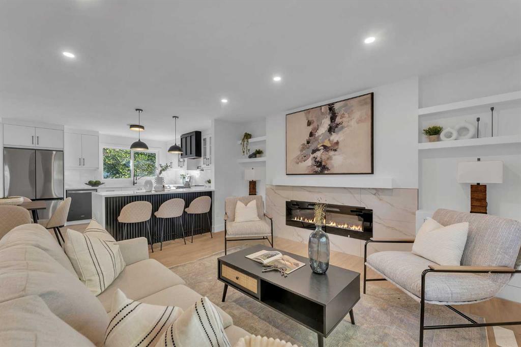 FRONTING ON GREEN SPACE!! FULLY RENOVATED BUNGALOW!! 2100+ SQFT OF LIVING SPACE!! 4 BEDROOMS!! 3 FULL BATHS!! UPGRADES INCLUDE: UPDATED LANDSCAPING - NEW GARAGE DOORS - FULLY REFRESHED SUNROOM WITH HEATING - NEW WINDOWS - MASTER BEDROOM WITH FULL BATH - WET BAR IN BASEMENT!! Step inside to a bright living area with a cozy fireplace that flows seamlessly into the dining space and a custom kitchen featuring STAINLESS STEEL APPLIANCES, WATERFALL COUNTERTOP, and modern finishes. The main floor offers 2 bedrooms including a spacious PRIMARY BEDROOM with WALK-IN CLOSET and 3PC ENSUITE BATH, plus another bedroom and full 4PC bath. A SUNROOM with backyard access completes the main level. The lower level is designed for flexibility with a HUGE REC ROOM, electric fireplace, wet bar with bar fridge, 2 bedrooms, a 3PC bath, and laundry. Outside, enjoy a private backyard with patio and an OVERSIZED SINGLE DETACHED GARAGE as well as EXTRA PARKING PAD. This Braeside bungalow is more than a home — it’s a perfect blend of MODERN UPDATES, FUNCTIONAL SPACE, and a PEACEFUL GREEN SPACE SETTING!