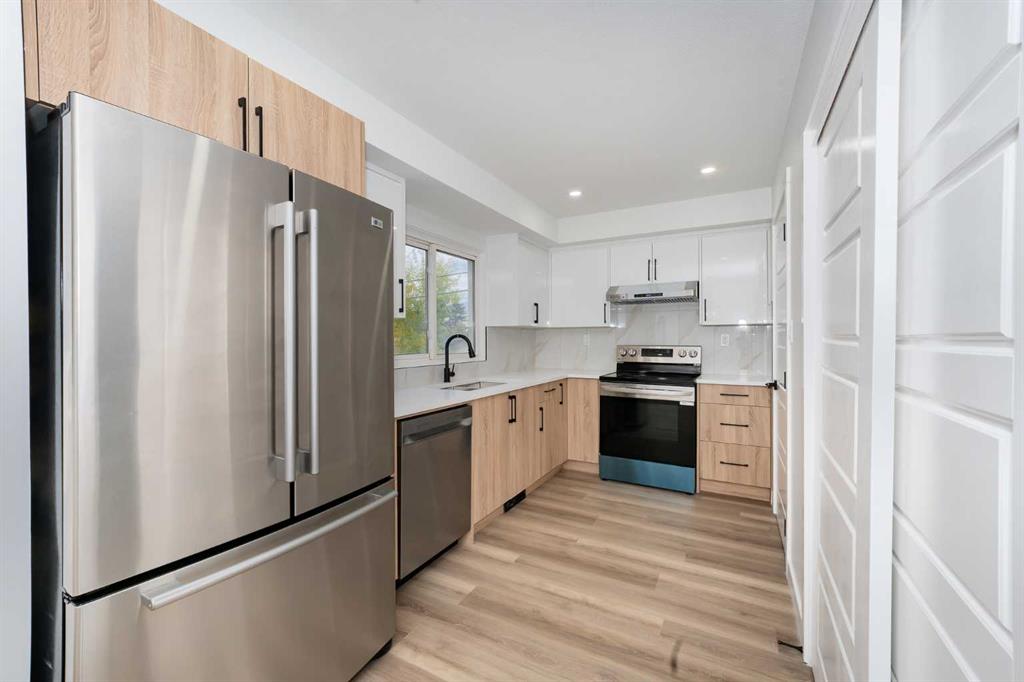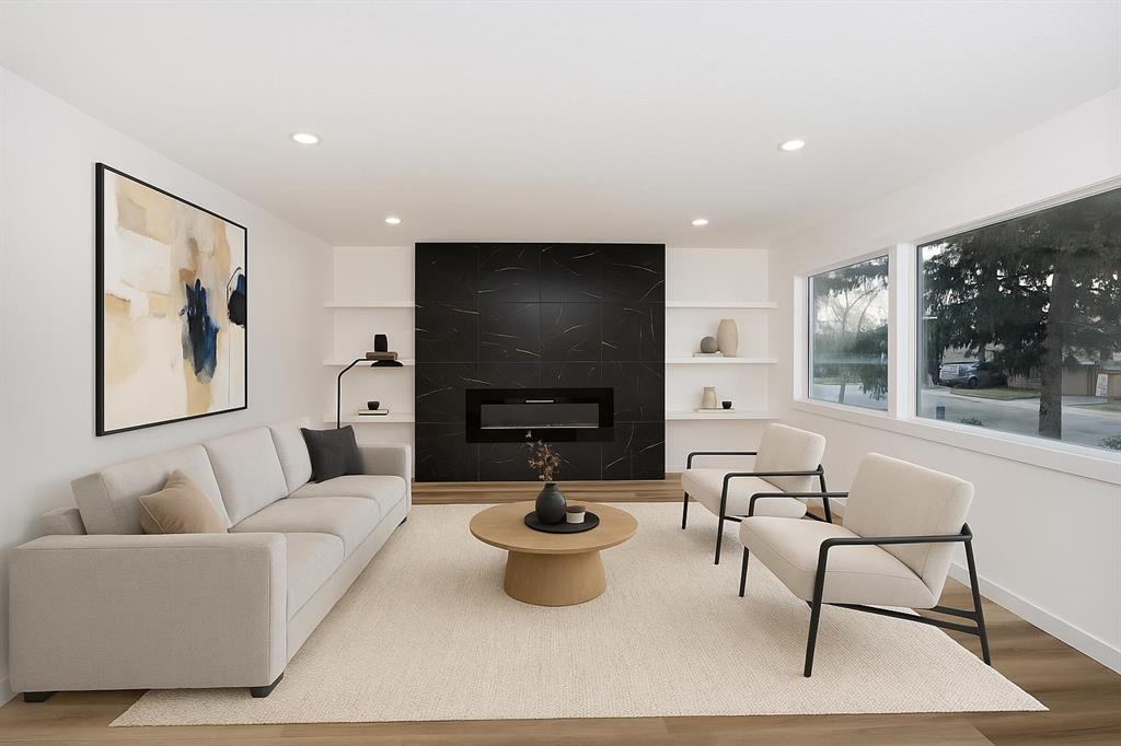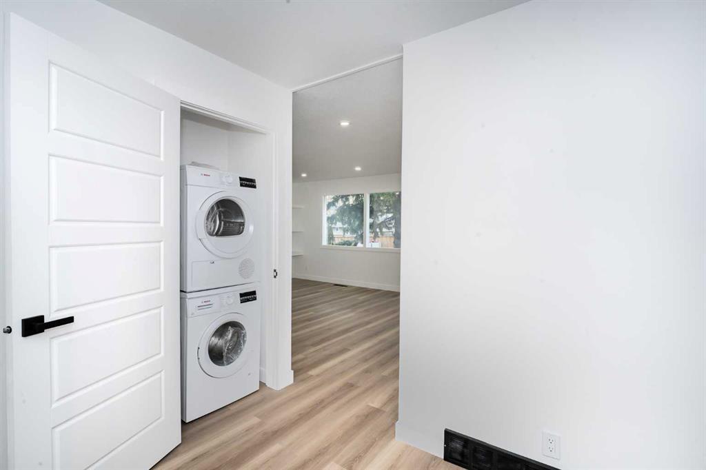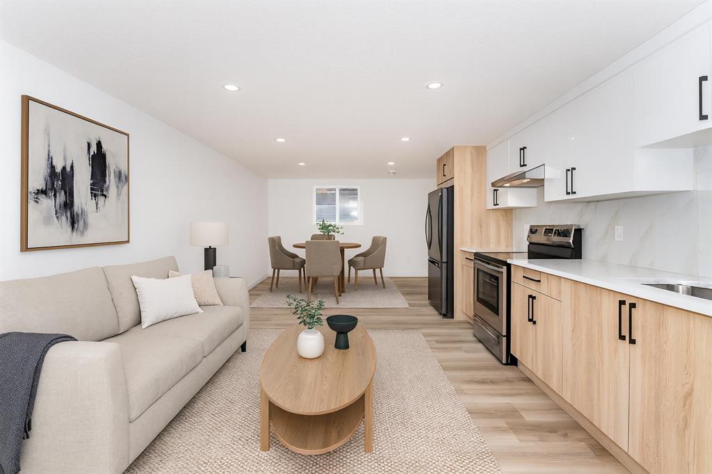 This beautifully renovated bungalow has been transformed from the studs up, offering a modern design and functional living spaces. The main floor features an open-concept layout filled with natural light, highlighted by a striking tiled feature wall with an electric fireplace. The brand-new kitchen boasts sleek cabinetry, quartz countertops, and premium stainless-steel appliances. Three spacious bedrooms and a stylish full bathroom complete the main level. The basement with its own private entrance offers a fantastic mortgage helper setup. It includes two bedrooms, a full bathroom, a contemporary kitchen, and a generous living/dining area, perfect for extended family or rental potential. Step outside and enjoy your private backyard retreat. Surrounded by mature trees, this outdoor oasis is designed for all seasons, featuring a gas firepit that’s perfect for cozy Calgary evenings, a patio for entertaining, and a fully fenced yard for privacy. A double carport with paved alley access adds convenience and rare value. Ideally located just minutes from schools, Max Bell Arena, shopping, and community amenities, with easy access to Memorial Drive, International Avenue, the LRT, and downtown this home offers both comfort and unmatched convenience. Don’t miss your chance to own a fully renovated home with a separate-entry mortgage helper in a prime inner-city location!