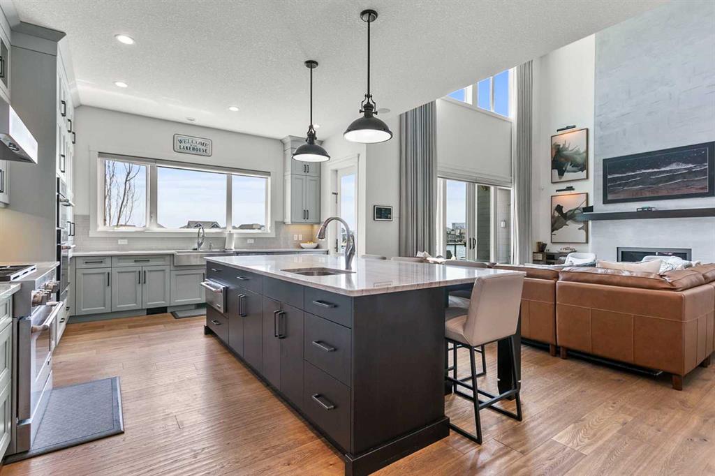 Welcome to the lakefront retreat you’ve been dreaming of—nestled on one of the LARGEST LOTS on AUBURN BAY LAKE, this stunning residence offers over 4,800 SQ FT OF EXQUISITELY DESIGNED LIVING SPACE, a PRIVATE DOCK, and spectacular PANORAMIC VIEWS from nearly every room. Step inside to soaring 19-FOOT CEILINGS and dramatic FLOOR-TO-CEILING WINDOWS that flood the main floor with natural light and frame the sparkling lake like a work of art. The open-concept design effortlessly connects the living, dining, and kitchen areas—perfect for both grand entertaining and everyday comfort. One of the standout features of this exceptional home is the DEDICATED MEDIA ROOM, complete with THEATRE-STYLE RECLINER SEATING, creating the ultimate spot for movie nights, game day gatherings, or immersive entertainment experiences right at home. The chef’s kitchen is a true showpiece, featuring DAUTER STONE GRANITE COUNTERTOPS, high-end JENN-AIR APPLIANCES, a massive island with extra seating, a WALK-THROUGH PANTRY, and a dedicated COFFEE STATION to elevate your daily routine. A PRIVATE HOME OFFICE and an oversized TRIPLE GARAGE add practical luxury. The MAIN FLOOR PRIMARY SUITE is a serene retreat, boasting UNOBSTRUCTED LAKE VIEWS, sliding doors to the expansive deck, and a spa-inspired 5-PIECE ENSUITE with dual sinks, marble countertops, and a spacious walk-in closet. Upstairs, a sunlit SITTING AREA overlooks the main living space and leads to two generously sized bedrooms and a full bath—providing comfort and privacy for family or guests. The FULLY DEVELOPED WALKOUT BASEMENT continues the theme of elevated living, with a large GAMES AREA, sleek KITCHENETTE, two additional bedrooms—one with a private ensuite and walk-in closet, the other with direct lake views—and a luxurious full bathroom featuring a STEAM SHOWER. The COVERED PATIO, finished with stylish tile plank flooring, opens to a beautifully landscaped yard with a CUSTOM SHED and ample room for outdoor enjoyment. Additional highlights include IN-FLOOR HEATING in the basement, CENTRAL AIR CONDITIONING throughout the home, and the option to purchase the property TURNKEY AND FULLY FURNISHED, complete with high-end furnishings and curated artwork for a seamless move-in experience. (Ask your realtor for details on the furnished option.) This is a RARE OPPORTUNITY to own a premier LAKEFRONT PROPERTY in one of Calgary’s most sought-after communities. Don’t miss your chance to experience the best of AUBURN BAY LIVING—where luxury, comfort, and lakeside beauty come together in perfect harmony.