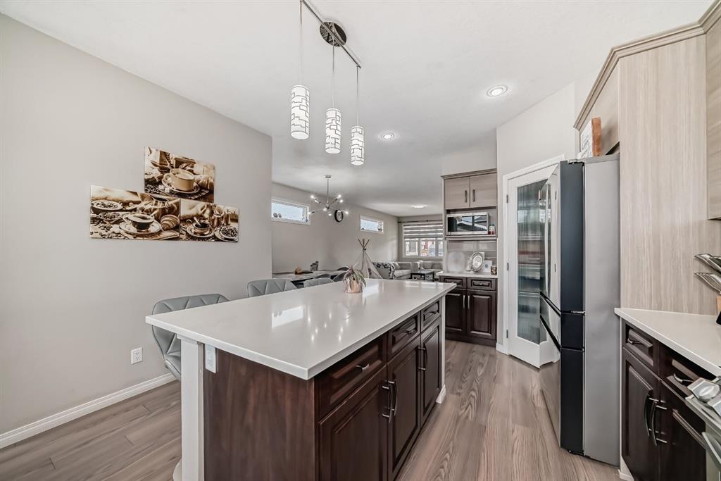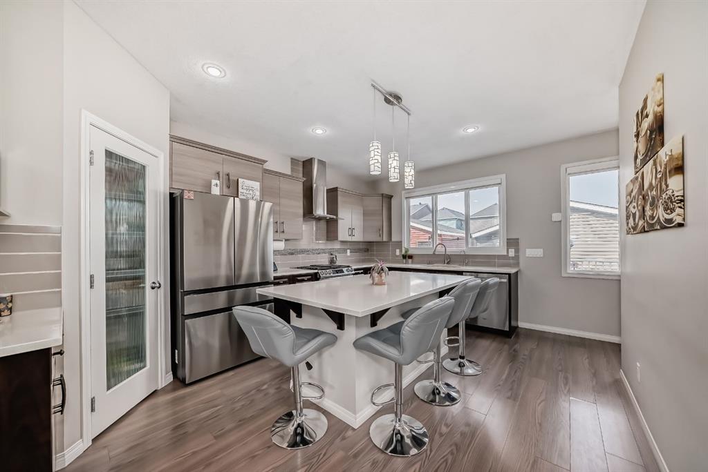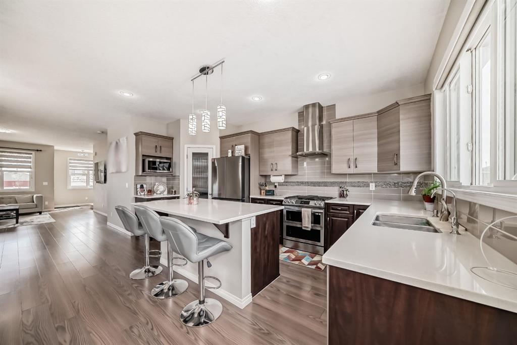 Welcome to this exquisite CORNER home situated in the picturesque community of REDSTONE. The main floor greets you with an expansive open-concept layout comprising a comfortable Living Room, a spacious Dining Area, a convenient 2-piece Washroom, and a stunning Kitchen equipped with stainless steel appliances including a gas stove and quartz countertops. Ascend to the upper floor to discover the luxurious master suite featuring a 3-piece en-suite and a generously sized walk-in closet with ample storage. Additionally, there are two more well-appointed bedrooms, a stylish 4-piece washroom, a Laundry Closet, and a versatile loft/bonus area. This home boasts premium upgrades such as 9-foot knockdown ceilings, elegant designer lighting, laminate flooring, quartz countertops, and chic backsplash tiles. Downstairs, the fully finished basement features an illegal suite that includes a newly constructed bedroom with a walk in closet, bathroom, Kitchen, private laundry, and a separate entrance—ideal for extended family, guests, or potential rental income. Other notable features include a water softener and water filtration system. Outside, enjoy the benefit of a double-car detached garage and a low-maintenance yard. Conveniently located close to shopping, parks, and bus stops. Don’t forget to take a virtual tour by clicking the link above!