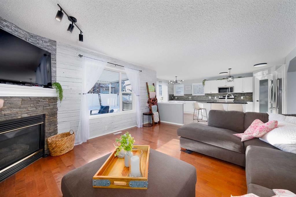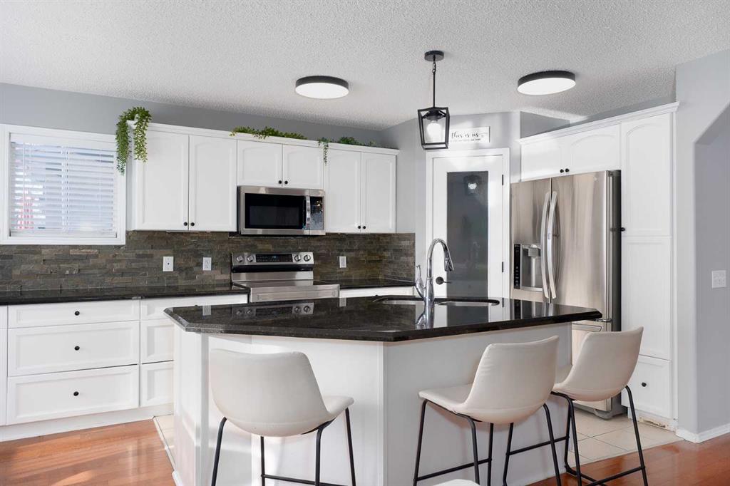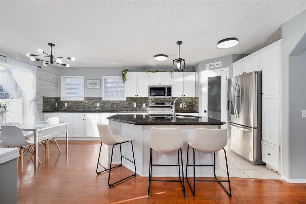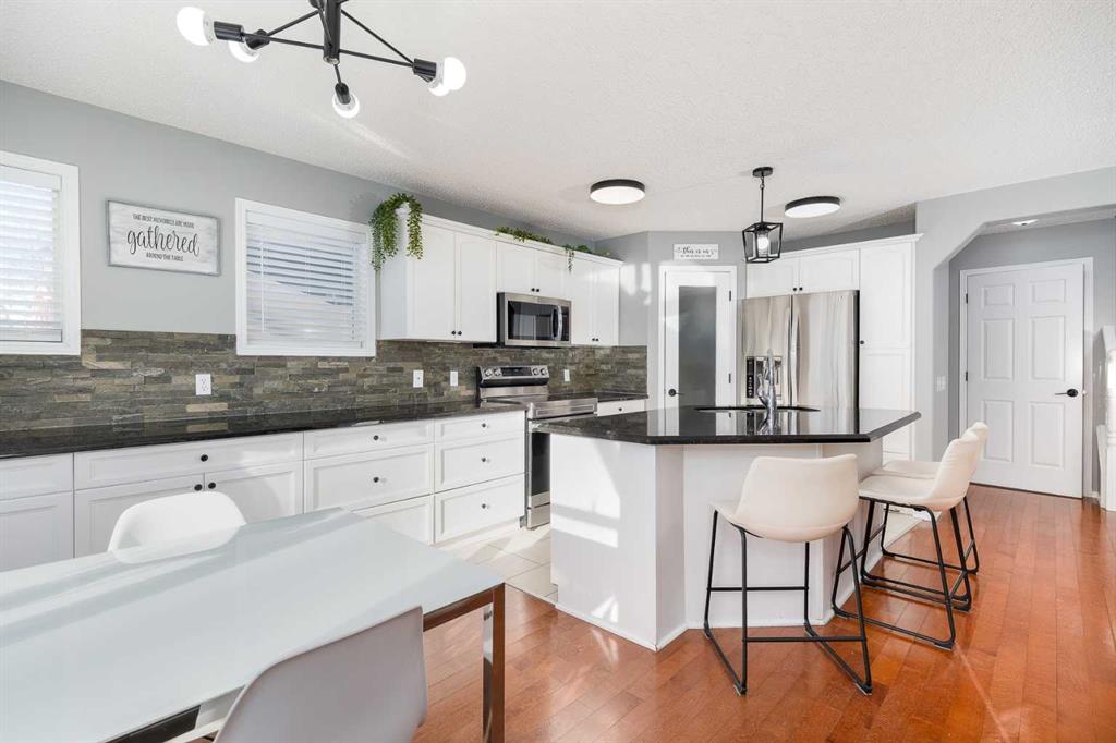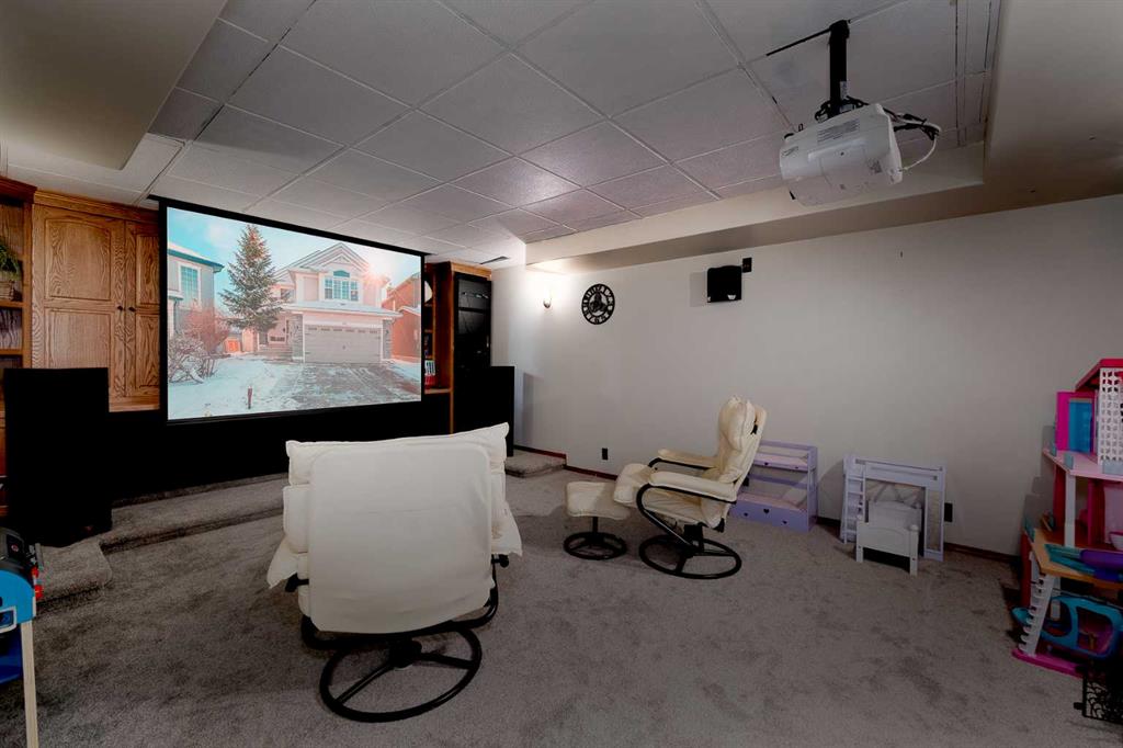 Tucked away on a quiet street in the heart of Chaparral, just a short walk to the lake, this beautifully maintained and fully finished home is the perfect place for your family to grow and make memories. Set on an oversized pie-shaped lot with paved lane access, the home has been freshly painted, and nicely updated, allowing you to move in with confidence and ease. With over 2,700 sq. ft. of developed living space, the bright and inviting floor plan is filled with natural light thanks to an abundance of extra windows. The kitchen is a true family hub, showcasing rich dark granite countertops, crisp white cabinetry, and sleek stainless steel appliances—both stylish and practical for everyday life. A main-floor office or den provides a quiet space for work or homework, while the spacious bonus room with vaulted ceilings and built-in speakers is ideal for movie nights or playtime. Downstairs, the family room is designed for fun, featuring a media room complete with an entertainment unit, hidden projection screen, and surround sound—sure to be a favorite gathering spot for kids and adults alike. With four bedrooms and four bathrooms, there’s plenty of room for family, guests, and everything in between. Step outside to enjoy the large backyard, thoughtfully designed with a two-tiered deck (half covered), mature trees, privacy screening, and newly updated maintenance-free fencing—perfect for outdoor entertaining, relaxing evenings, and kids at play. Additional highlights include a nicely maintained extra-wide driveway with added concrete on both sides and a fantastic interior community location close to the lake, elementary school, and playground. With quick access to Macleod Trail, Stoney Trail, and nearby amenities, this is a wonderful opportunity to enjoy the lake life in one of Calgary’s most sought-after communities. This is a place your family will be proud to call home.