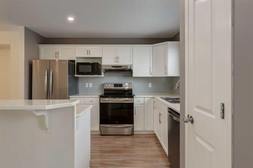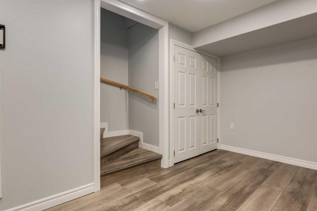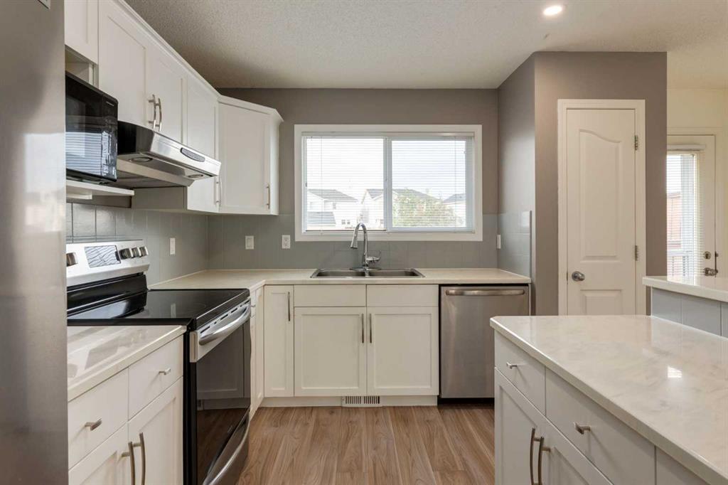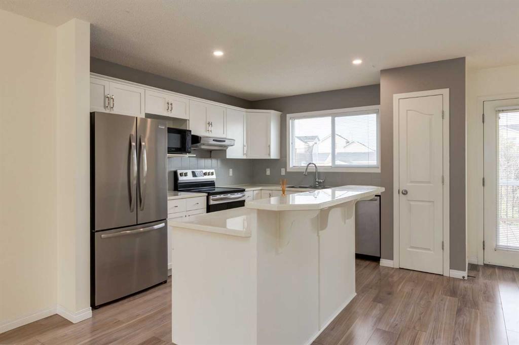 Step into this beautifully maintained 3-bedroom, fully finished semi-detached home located in the sought-after community of Cranston. Thoughtfully updated and cared for, this property is ready to impress!On the main floor, you’ll find a spacious living room that flows seamlessly into the dining area and open kitchen. Natural light fills the space, highlighting the kitchen’s ample counter space, breakfast bar, and convenient pantry. A stylish 2-piece bathroom completes the main level.Upstairs, enjoy newer carpet and underlay that was replaced in recent years. The primary bedroom features a fresh accent wall, generous closet, and large window. A second bright bedroom with its own walk-in closet is located across from a 4-piece bathroom, providing excellent separation and privacy.The finished basement adds even more living space, offering a large bedroom with a walk-in closet, a 3-piece bath, LVP flooring, and a laundry closet with a new washer and dryer. The basement also includes a rec room complete with a wet bar—perfect for entertaining.The roof is a level 4 Owens Corning hail-resistant shingles was also replaced in recent years. Outside, the extra-deep lot offers plenty of backyard space with a refinished deck, garden, shed, and a grassy area for kids or pets to play. Being in Cranston you can enjoy parks, schools, and natural pathways nearby. You’ll also find year-round activities such as skating and tobogganing in winter, and a splash park, playgrounds, and courts in summer in this amazing community