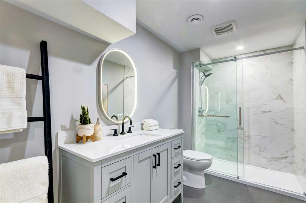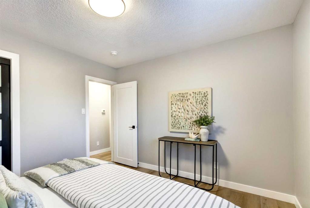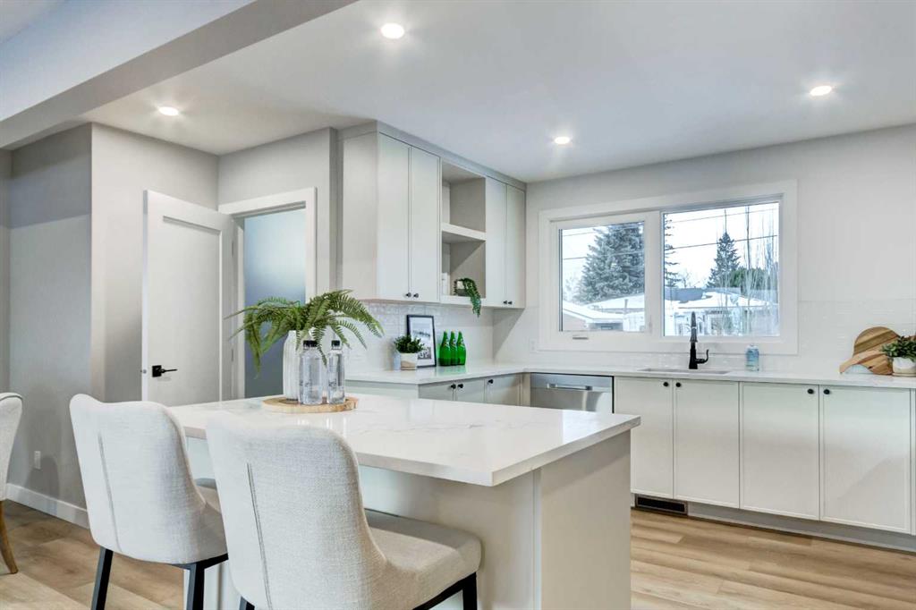 Welcome to this stunning, fully renovated bungalow; every detail has been thoughtfully reimagined for modern living. With designer finishings throughout, including new luxury vinyl plank flooring on the main level and brand-new carpet on the fully finished lower level. Fresh paint, updated trim, and south-facing windows enhance the home’s bright, inviting feel. This stunning designer kitchen is bright, beautifully curated showcasing micro-shaker cabinetry, sleek, expansive quartz countertops, and spacious eat-up centre island with additional storage, the perfect blend of style and function for everyday living or entertaining. Flooded with natural light from the oversized picture window, framing peaceful backyard views and creating an airy, inviting atmosphere. Finished with matte-black hardware, stainless steel appliances, elegant beveled subway tile backsplash, this kitchen offers a sophisticated modern aesthetic with undeniable warmth and luxury. Flows effortlessly into the adjoining living areas, making it ideal for both everyday living and memorable hosting. The front living room and adjoining dining room are filled with natural light and showcase stunning downtown views, creating an elevated and welcoming space to relax or entertain. The main floor offers a generous primary bedroom along with two well-appointed front bedrooms, each designed with comfort and versatility. The fully renovated bathroom impresses with a quartz-countertop vanity, stylish black faucets and hardware, a designer LED backlit mirror, and a tub with upgraded shower fixture set against textured contemporary tile. The fully finished basement provides exceptional additional living space with brand-new windows, a legal spacious 4th bedroom, a versatile flex room ideal for a home gym or office, and a large recreation area perfect for movie nights or a kids' play space. The beautifully redesigned bathroom feels like a boutique hotel spa, showcasing a luxurious walk-in shower with floor-to-ceiling marble-style tile, sleek glass doors, and premium fixtures. The quartz-countertop vanity pairs perfectly with matte-black hardware and a striking LED backlit mirror, creating a sophisticated, modern retreat with effortless style. The impressively clean mechanical room reflects the extensive renovation throughout the home, featuring updated plumbing, electrical, and HVAC systems. The brand-new high-efficiency furnace, 50-gallon hot water tank, and clear utility access, provides peace of mind and long-term reliability. One of the property’s standout features is the private backyard oasis—a generously sized yard with a clean, open layout ideal for families, pets, or anyone wanting room to relax and enjoy the outdoors. Enjoy peace of mind with a comprehensive renovation from top to bottom. This exceptional bungalow is truly move-in ready, offering modern luxury, thoughtful upgrades, and a serene outdoor setting. Don’t miss your opportunity to make this beautiful home your own.