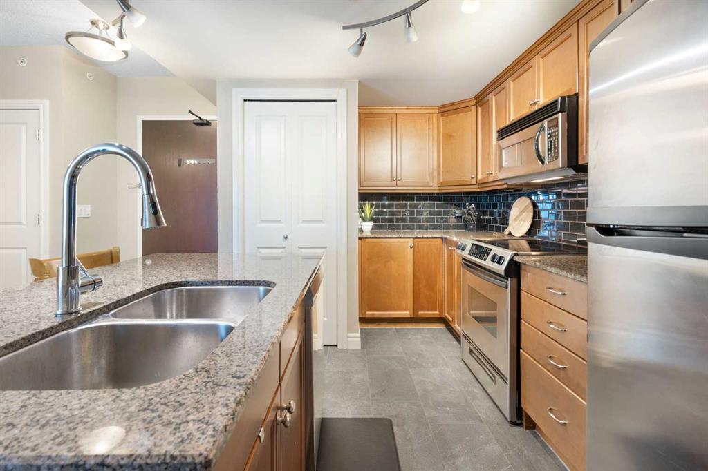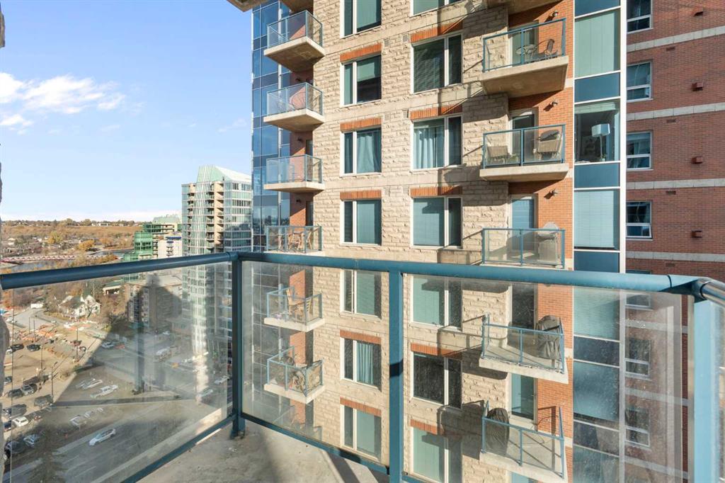 Welcome to your riverside retreat! This bright and spacious corner unit showcases wall-to-wall, floor-to-ceiling windows filling the home with natural light and offering sunny south-facing views plus a glimpse of the river from your private balcony. Inside, recent updates include new tile flooring in the kitchen, a dishwasher, and a sleek kitchen faucet. Unlike many narrow high-rise layouts, this home offers a thoughtfully designed floor plan with a full dining room off the kitchen and an open living area, anchored by a cozy gas fireplace, perfect for everyday living or entertaining. The dual-access 4-piece ensuite bathroom connects directly to the primary bedroom while also offering convenient access for guests. Additional comforts include central air conditioning and in-suite laundry. This pet-friendly building offers premium amenities, including a full-time concierge, heated underground parking, storage, and a party room with an outdoor terrace. Step outside and enjoy the best of inner-city living with the Bow River pathways, trendy Kensington, Alforno Bakery & Cafe, the 8th Street Train Station, and some of Calgary’s top dining spots like Orchard Restaurant and Bridgette Bar, all just steps away.