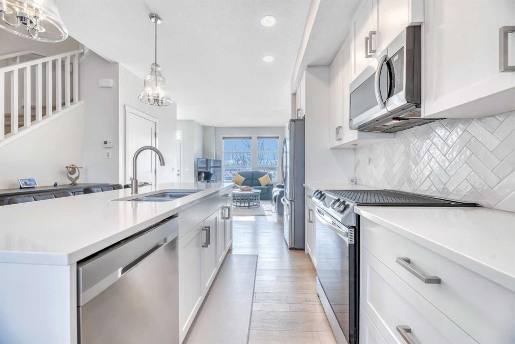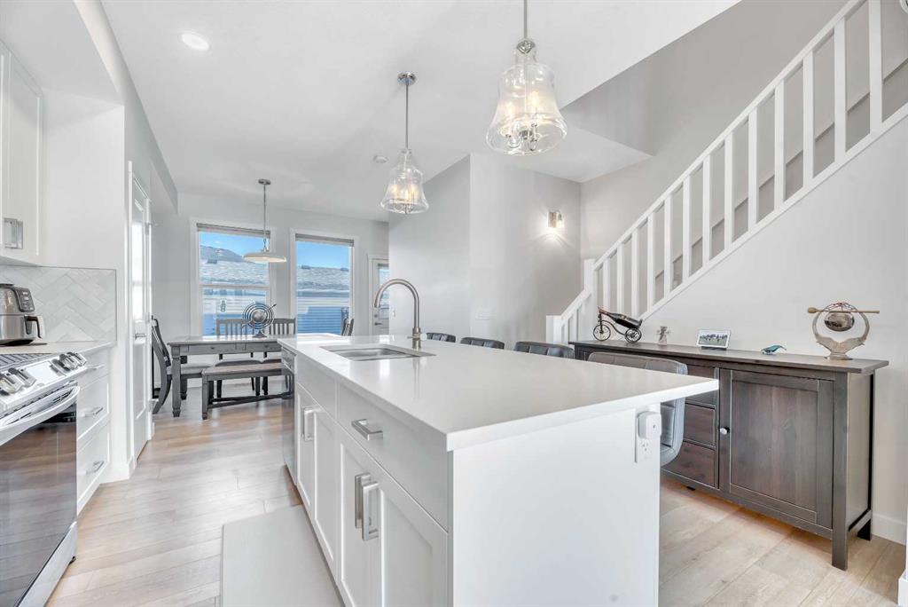 Wolf Willow - 196 Wolf Hollow Park SE: Welcome to this stunning 4-bedroom, 4-bathroom air-conditioned townhouse with over 1,850 sq. ft. of living space in the vibrant community of Wolf Willow. No condo fees and still under warranty! Beautifully maintained and showing like new, this home offers a bright and airy main floor with large south-facing windows that fill the living room and foyer with natural light. The gorgeous kitchen is built for entertaining, featuring a large island, stainless steel appliances, soft-close cabinetry, and both fridge water and gas stove lines for future upgrades. A spacious dining area for family gatherings and a convenient 2-piece powder room complete the main level. Upstairs, you’ll find a sunny primary suite with partial river views, a 3-piece ensuite, and a walk-in closet with its own window. Two additional bedrooms, a 4-piece guest bath, and top-floor laundry with storage make everyday living effortless. The fully developed basement adds even more value, offering a large rec room, a fourth bedroom with a nook, a 3-piece bath with walk-in shower, and ample storage space. Step outside to enjoy the landscaped backyard with a natural gas BBQ line — perfect for summer evenings — along with a double detached garage for secure parking and extra storage. Additional upgrades include silhouette blinds throughout, soft-touch switches, and doorbell cameras at both entrances and the garage. Set in a truly special location, this home is just steps from scenic river pathways and the great outdoors. Wolf Willow blends modern living with natural beauty, bordered by the Bow River and Fish Creek Provincial Park. Residents enjoy access to over 100 km of trails, countless parks, and easy connections to shopping, schools, and downtown Calgary. Don’t miss your chance to own this beautifully developed home in a fantastic community — and at a price that’s hard to beat! Book your showing today.