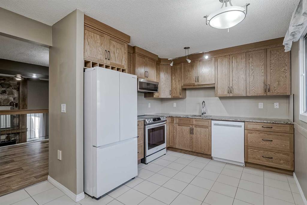Welcome to this fabulous 3 bedroom, 3.5 bathroom home in one of Calgary's most sought after complexes, Silver Springs Court. This home truly has it all. As you enter you are greeted with gorgeous tile floors leading you in to your 4 level split floor plan starting with your living room that opens directly to your SOUTH FACING BACKYARD. Tall ceilings give you an immense feeling of space and your wood burning fireplace will keep you warm on those cold fall days. Your dining room overlooks the living room making a perfect space for dinner parties or quiet nights at home with the family. Your kitchen is well equipped with BRAND NEW APPLIANCES, tons of cabinetry and counter space, perfect for all of your culinary adventures. A 2 piece bathroom and laundry room finish off the second level before heading up to the bedrooms. Your massive primary bedroom is large enough for a king size bed and all of your additional furniture and is accented with a beautiful ensuite bathroom. The second and third bedrooms are both a great size with large closets and an addition full bathroom completes the upper level. The basement is fully finished with a flex room and another full bathroom with corner toilet and walk in shower. Your oversized single garage has a brand new door and opener, is drywalled and insulated and gives you ample storage space. Your new home opens on to a green space in the back from the yard and is well situated close to schools, shopping, parks and pathways. Silver Springs is one of Calgary's premier neighbourhoods giving you the lifestyle you have always wanted! Do not miss out on this opportunity!