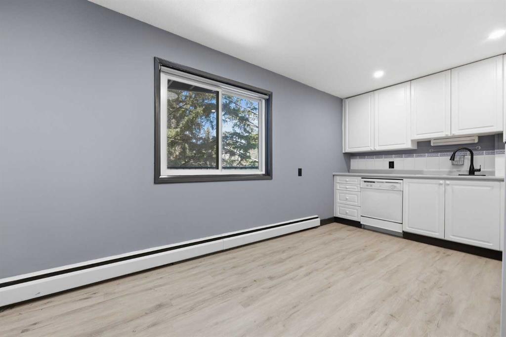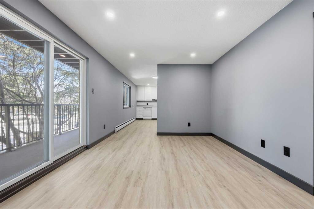 Live the Brentwood lifestyle—where convenience meets comfort just steps from transit, shopping, dining, and parks. This bright and beautifully refreshed 1-bedroom condo offers 649 sq ft of functional living space on the second floor, ideal for first-time buyers, students, or savvy investors. Step inside to a generous, airy living room that offers plenty of space to relax or entertain, and opens seamlessly onto an oversized balcony—perfect for unwinding or hosting friends. The well-laid-out kitchen features plenty of space to cook and gather, complete with a dedicated dining area. A built-in nook adds flexibility for a home office or study zone. Freshly painted throughout and enhanced with upgraded recessed lighting, the unit feels modern, clean, and move-in ready. The spacious primary bedroom offers excellent comfort, while a full 4-piece bath, in-suite laundry, and additional storage round out the interior. Enjoy added value with condo fees of $346/month covering heat and water, plus an assigned parking stall and visitor parking for guests. Unbeatable location—just steps to Co-op, Market Mall, LRT, restaurants, pubs, and everyday amenities. Minutes to the University of Calgary, SAIT, Nose Hill Park, and major hospitals. A fantastic opportunity to own in one of Calgary’s most desirable communities.