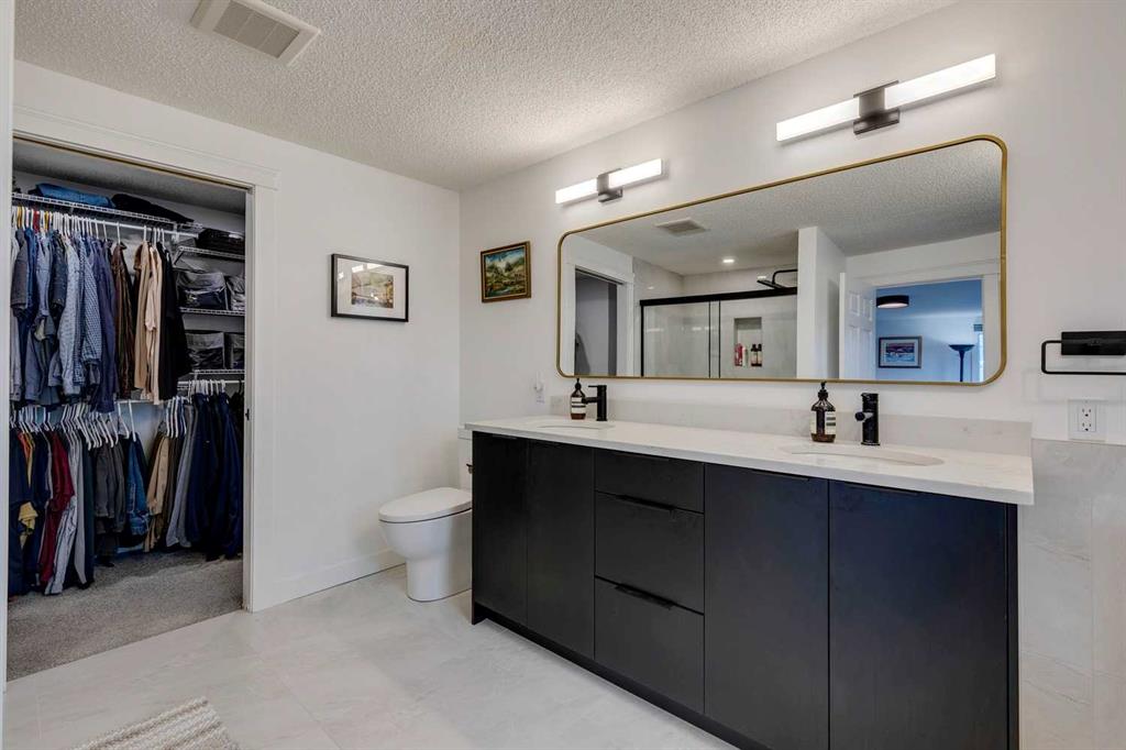 Beautifully renovated end unit townhome, over 2056 sq ft of living space, and backing directly onto a golf course— offering privacy, views, and a serene lifestyle. Inside, the main floor has been thoughtfully updated with modern finishes including all new light fixtures and luxury vinyl plank flooring. A front office with elegant French doors provides a quiet workspace while allowing natural light to stream through. The open-concept kitchen and living room make entertaining a pleasure, with a stunning wall of windows inviting in natural light and showcasing your exclusive outdoor retreat overlooking the golf course. The kitchen has black and white cabinetry with Quartz countertops, a large island with seating for four, abundant counter and cupboard space, and stainless-steel appliances. The living room is very spacious and features a Bluetooth-enabled electric fireplace that can also act as a speaker! A formal dining room, separate laundry room, a half bath, and access to the attached double car garage complete this level. Upstairs, you’ll find three generously sized bedrooms. The primary retreat is exceptionally spacious and includes access to a private balcony with views of the greenspace. The spa like ensuite offers a deep standalone tub, double sinks, separate shower, and a walk-in closet with organizers. A second beautifully renovated full bathroom serves the additional bedrooms, which also enjoy views of the golf course. The basement offers one finished room with the remainder ready for your personal touch. Outdoor living is where this home truly shines — enjoy a private patio facing the golf course with no neighbours behind, plus additional green space beside the unit. Don’t be surprised when the deer come for a visit! The furnace, hot water tank and electrical were updated in 2022, and the A/C is a couple years old. The exterior has been freshly painted. The location can’t be beat: a quiet street and backing onto Canyon Meadows Golf Course!