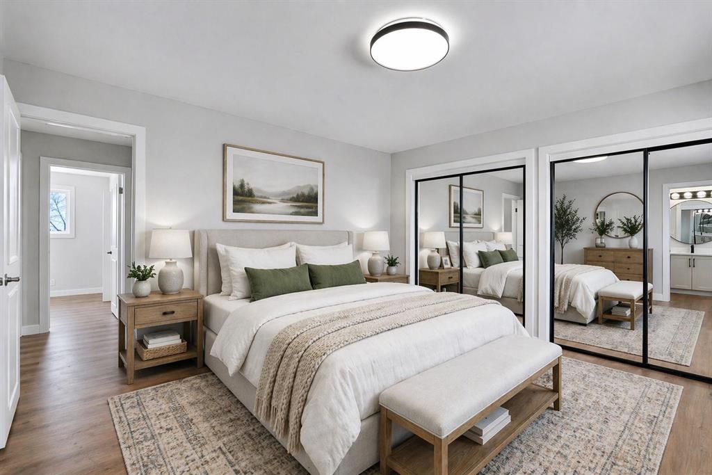 Welcome to this beautifully reimagined 5-bedroom, 4-bathroom home offering over 2,650 sq ft of thoughtfully designed living space. Tucked away on one of Marlborough Park’s quietest cul-de-sacs, this property backs onto open green space and is perfectly positioned just minutes from schools, CTrain stations, shopping, dining, and major commuter routes. The main floor spans over 800 sq ft and showcases a bright, open concept layout featuring a spacious living room, dining area, and a chef inspired kitchen anchored by an impressive 10' × 5' island with abundant storage. The adjacent family room blends modern comfort with timeless character, highlighted by a refreshed original brick feature wall. South and west facing windows flood the home with natural light throughout the day. With five bedrooms and four full bathrooms, the layout is exceptionally well suited for families of all sizes. The upper level offers three bedrooms, including a generous primary retreat complete with an ensuite and dual closets, along with two additional bedrooms and a full bathroom, all enjoying peaceful park views. A fourth bedroom on the main floor, paired with a 3 piece bath and laundry, creates the perfect setup for guests or multi generational living. The fully developed lower level adds even more versatility, featuring a large fifth bedroom, an additional full bathroom, and over 700 sq ft of recreation or family space. Notable upgrades include a high efficiency furnace, a large hot water tank, and smart-home features such as Ring cameras, Wi-Fi light switches, smart locks, and thermostats delivering everyday comfort, efficiency, and peace of mind. Completing the package is an oversized front drive garage, an increasingly rare find in Marlborough Park offering added convenience, storage, and year-round functionality. Outdoor living is equally impressive, with a solid, newly built deck off the kitchen, a concrete patio, a private yard, and a newly installed fence accented by a decorative rock feature perfectly suited for a firepit or outdoor gathering space. A rare opportunity to own a home renovated with purpose, quality, and craftsmanship now offered at an exceptional new price, making this one of the best values in Marlborough Park.