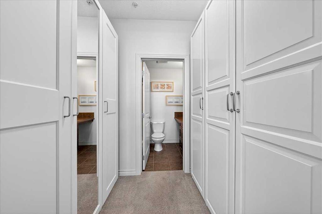IDEALLY LOCATED 2 BED/2 BATH MAIN FLOOR UNIT WITH TWO TITLED PARKING STALLS AND TITLE STORAGE - THERE’S A REASON PEOPLE FALL HARD FOR SPRINGBANK HILL—it’s the rare corner of the city where you can hit the walking paths, grab groceries, and still feel like you live tucked into nature. And with this two bedroom unit at Robson Summit of Montreux, you get it all—plus an actual BACKYARD FEEL thanks to a GROUND-LEVEL PATIO that opens straight to the courtyard. It’s where coffee tastes better, the barbecue actually gets used, and your four-legged roommate thinks you moved here just for them. Inside, the layout makes sense (and let’s be honest, not all condos do). The kitchen feels grown-up—BUILT-IN WALL OVEN, ELECTRIC COOKTOP, and a BREAKFAST BAR that’s perfect for pancakes, wine nights, or both. Just off to the side, a small OFFICE NOOK quietly gets things done without stealing square footage from the fun parts of the home. The living room hits that cozy-without-cramped balance, with CEILING FANS keeping the air moving and patio doors bringing in courtyard light. Both bedrooms are smartly separated for privacy: the master gets its own WALK-IN CLOSET and ENSUITE, while the SECOND BEDROOM loops into a CHEATER ENSUITE that wraps through the IN-UNIT LAUNDRY and back to the main space—an unexpectedly slick flow that makes everyday life less clunky. TWO TITLED UNDERGROUND PARKING STALLS, and a TITLED STORAGE LOCKER handle the grown-up details, while the building’s fitness room, bike storage, and secure entry keep things easy. Step outside and the location does the rest. GREENSPACES, PONDS, AND TRAILS wind just south of the complex, Stoney Trail gets you anywhere fast, and weekend errands stay civilized with Aspen Landing and Westhills minutes away. Call it what it is: A MAIN-FLOOR CONDO THAT LIVES LIKE A BUNGALOW, trades elevators for open air, and feels like Springbank Hill without the maintenance. Book a showing today—you’ll see how easy it is to picture yourself staying awhile.