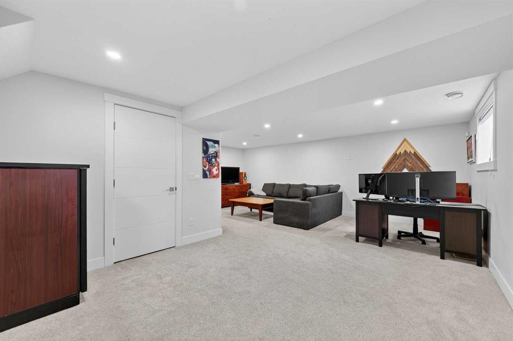 *** OPEN HOUSE Saturday, January 31, 2026 2pm – 4pm *** Tucked along a quiet street in the heart of Glendale, this beautifully renovated bungalow tells a story of thoughtful design, comfort, and effortless inner-city living, just minutes from Downtown, yet surrounded by one of Calgary’s most established and long-standing communities. From the moment you arrive, the modern farmhouse exterior, aggregate walkways and welcoming covered front porch set the tone. This is a home where neighbours stay, families grow, and down-sizers rediscover how easy life can be in a walkable, park-filled inner-city neighbourhood. Inside, the home unfolds into bright, open living spaces framed by large triple-pane windows and finished with durable, scratch- and waterproof LVT flooring perfect for busy family life and everyday comfort. The heart of the home is a stunning, custom-designed kitchen, anchored by a statement island, feature walls and thoughtfully built-in storage, creating a space that feels equally suited for morning coffee, family dinners and entertaining friends. The main level offers two generous bedrooms, including an oversized and private primary retreat. Here, a feature wall, patio door leading to the backyard and a spa-inspired five-piece ensuite with heated floors and a steam shower create a peaceful escape at the end of the day. Downstairs, the story continues with a fully developed lower level designed for connection and flexibility. A spacious recreation room with rough-ins for a home theatre, a stylish wet bar complete with wine cooler and wine rack, two additional bedrooms, a full bathroom and abundant storage make this level ideal for growing families, guests or multi-generational living. Every chapter of this renovation was carefully considered, with major upgrades already complete, including a new roof, furnace, hot water tank, electrical and landscaping, along with countless additional improvements throughout. And then there is the backyard, your own quiet retreat, located next to a park and within a playground zone. Mature trees, a large patio with gas BBQ hookup, and a double oversized detached garage create the perfect setting for summer evenings, family gatherings and relaxed weekends at home. In a community known for its long-term residents, easy access to Downtown and true inner-city convenience, this Glendale bungalow offers more than just a place to live; it offers a place to belong. Whether you are a young family putting down roots or looking to downsize without giving up space, style or location, this is a home where your next chapter can begin.