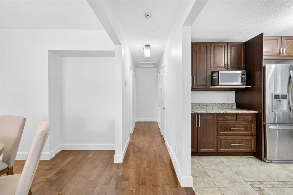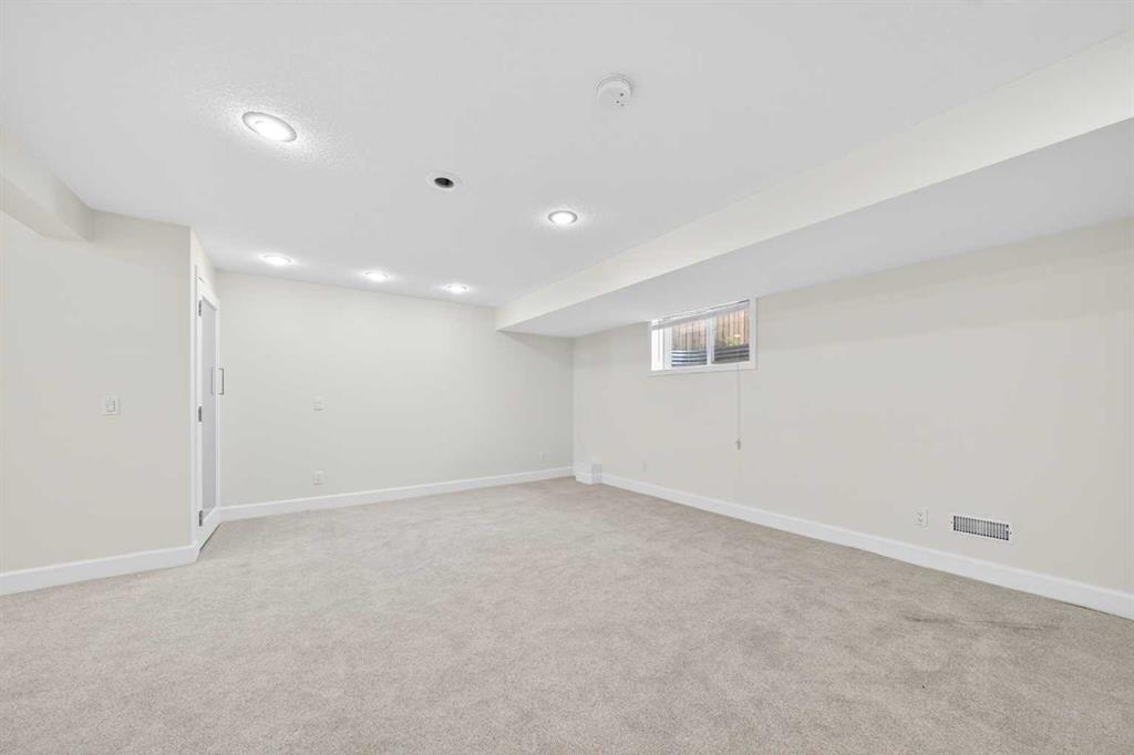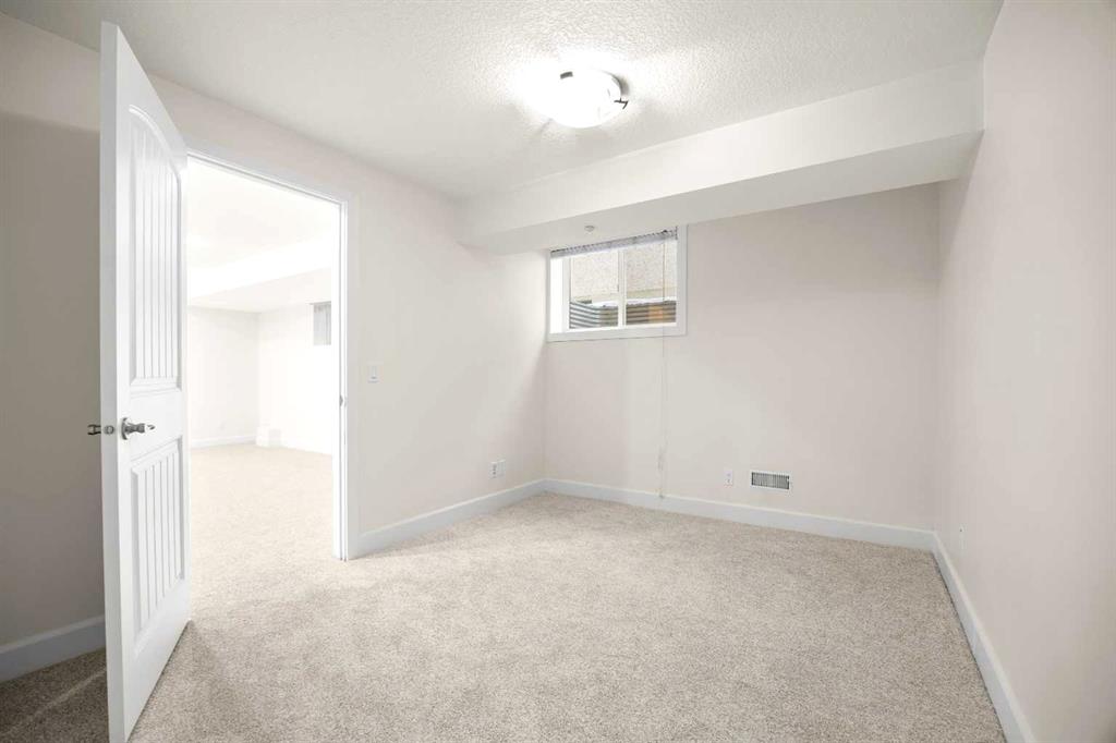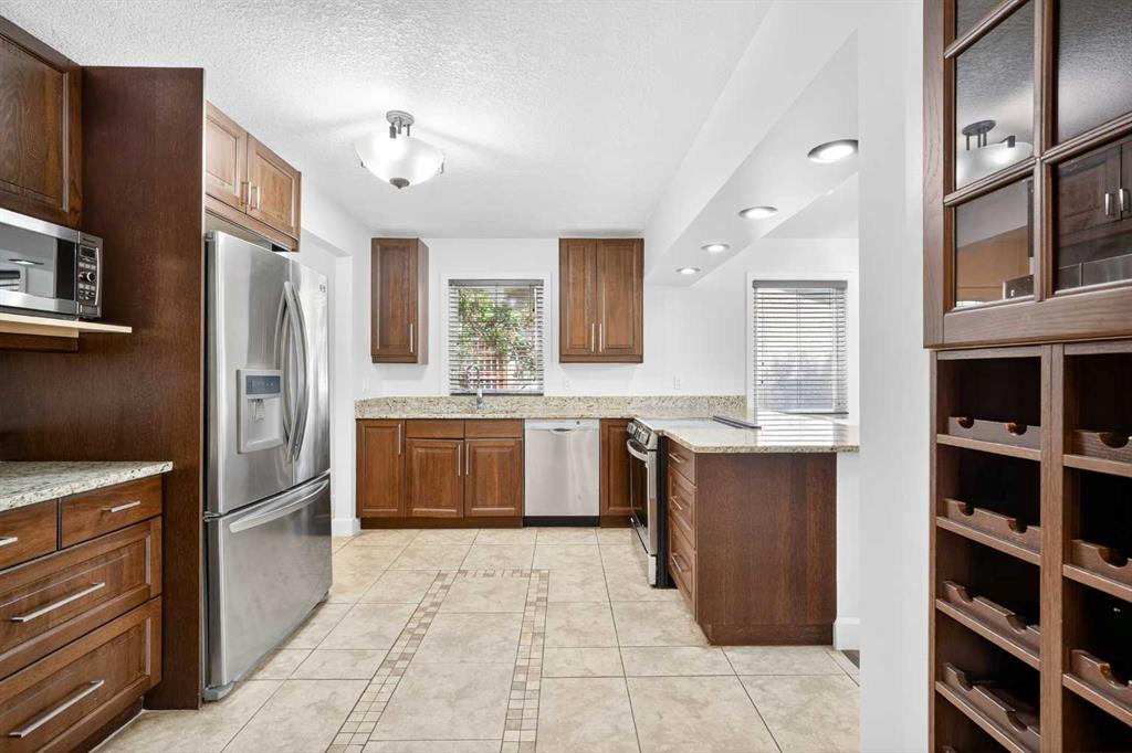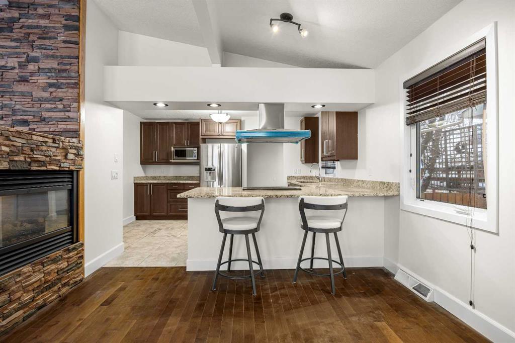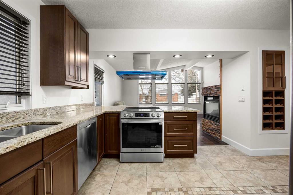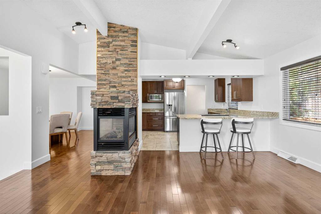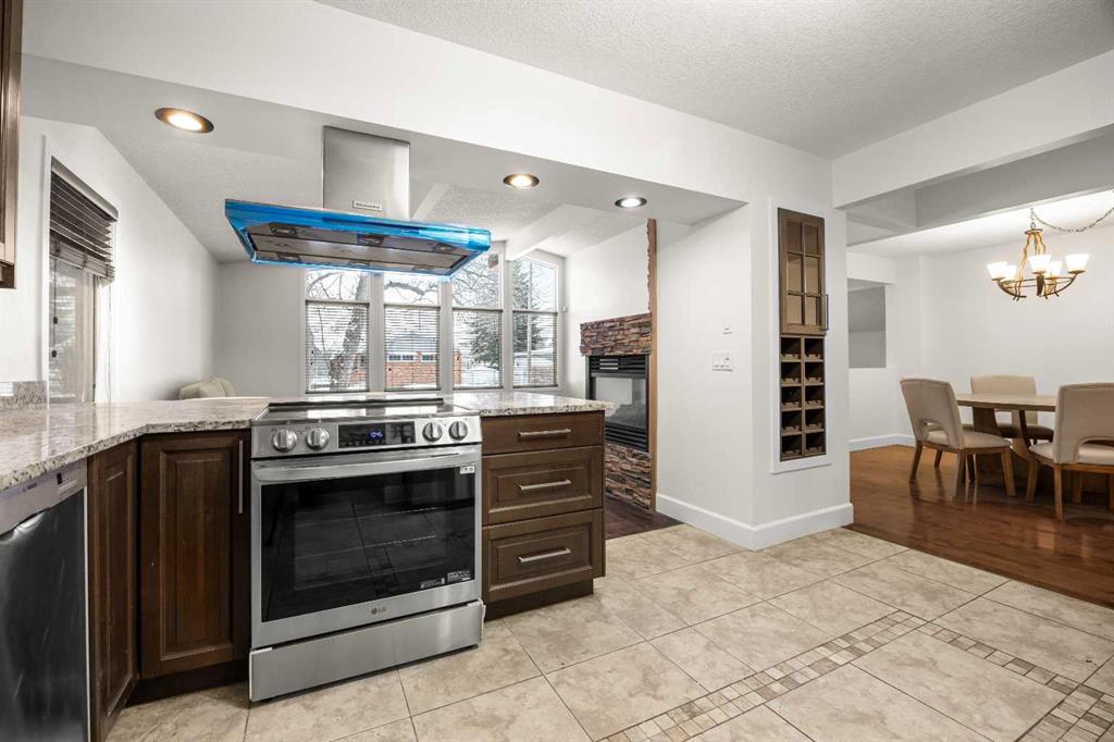 Beautifully renovated and designed for urban living, this stunning 1,790 sqft bungalow offers 3+1 bedrooms, 3 full baths, and a layout filled with natural light and thoughtful details — complete with air conditioning for year-round comfort. You’re welcomed by an open foyer with vaulted ceilings that continue into the living room, den, and primary suite, bringing natural openness to these central areas. On the right, the East-facing Living room is bright and inviting, featuring expansive windows, gleaming hardwood flooring and a striking three-sided gas fireplace that warms the living, kitchen, and dining spaces at once. The well-appointed Kitchen includes granite countertops, stainless steel appliances, a brand-new KitchenAid range hood, ample cabinetry, and a built-in wine rack. A convenient side door offers direct access to the backyard, while the adjacent Dining Room provides an ideal setting for family meals or entertaining. To the left of the foyer, a bright and spacious Den leads into the private primary suite. This retreat features a generous walk-in closet with built-in organizers, and a luxurious 5-piece ensuite with double vanity and granite countertops. From the primary bedroom, step directly into your private backyard complete with a gazebo. The main level is finished with two additional well-sized bedrooms and a 4-piece bathroom. The fully finished basement offers brand-new carpet, a large recreation room, a fourth bedroom with a walk-in closet, a 3-piece bath, and a dedicated laundry room with sink — perfect for added living space, guests, or extended family. The home features a spacious backyard with a deck and patio area, complemented by a double detached garage with back-lane access, providing both utility and comfort. Located in the highly sought-after community of Brentwood, you’re within walking distance to parks and several highly rated schools. Residents also enjoy quick access to the University of Calgary, Brentwood C-Train Station, Nose Hill Park, Brentwood shopping centre and Market Mall, and a wide selection of shops and amenities — making this an unbeatable combination of comfort, convenience, and community.