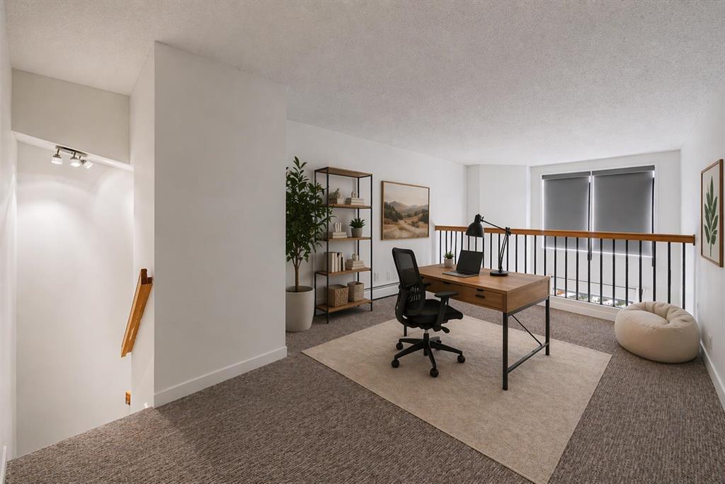 Unique, turn-key, and affordable, this quaint Kingsland apartment is an ideal space for a first-time home buyer. At nearly 900 sq ft, it offers in-suite laundry, one assigned parking stall, and a storage unit accessible from the balcony. The main living area is anchored by a wood-burning fireplace, while the loft above makes a perfect work-from-home space. The main floor has been tastefully refreshed with new paint and flooring. Best of all, the central location puts you just minutes from Chinook Centre, Macleod Trail, and transit.